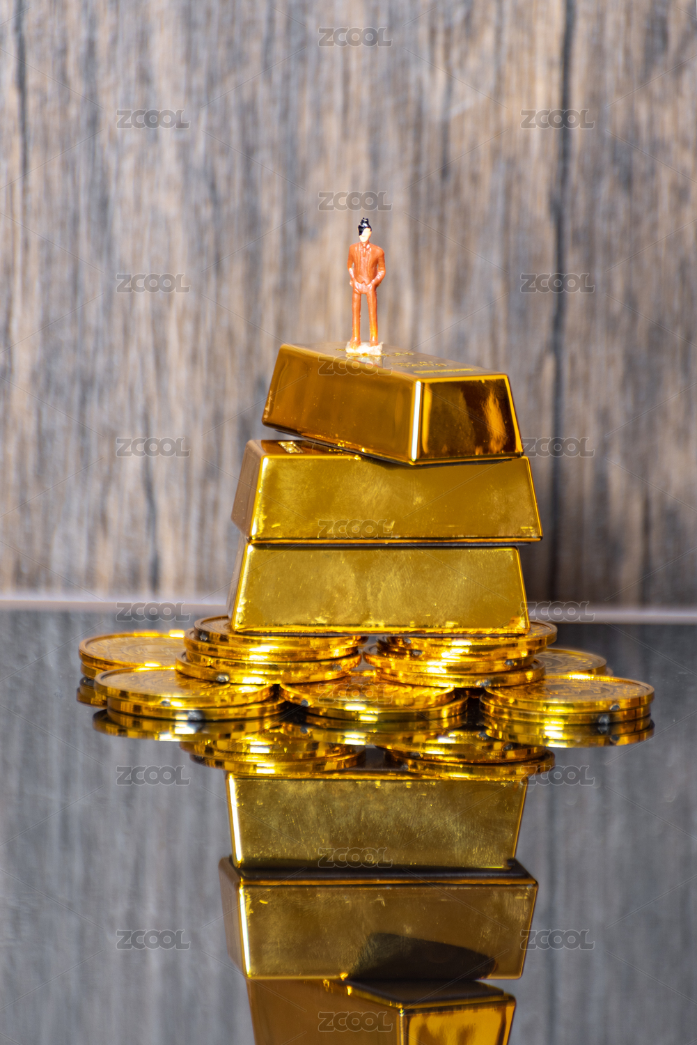 站在金條金幣上的商務(wù)人士