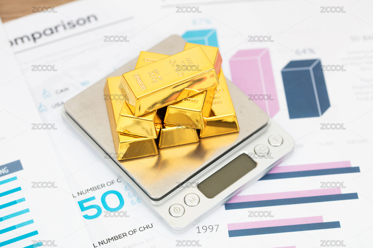 金條和電子秤在金融文件上