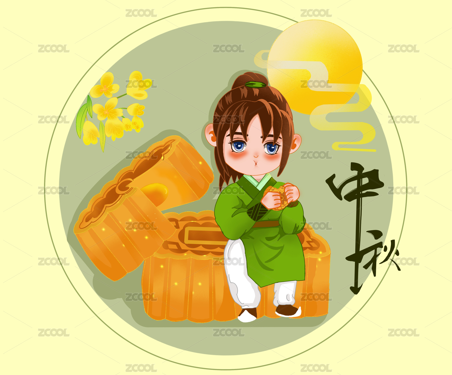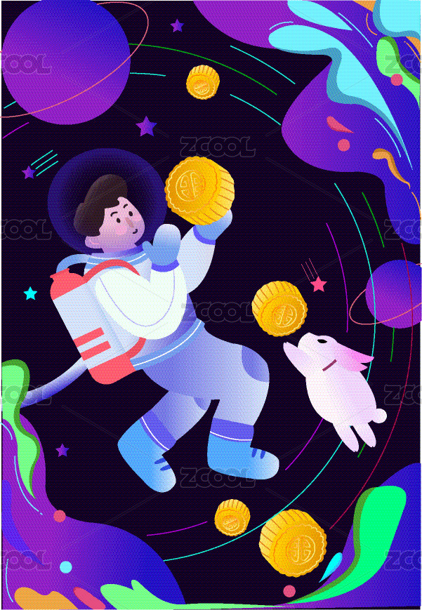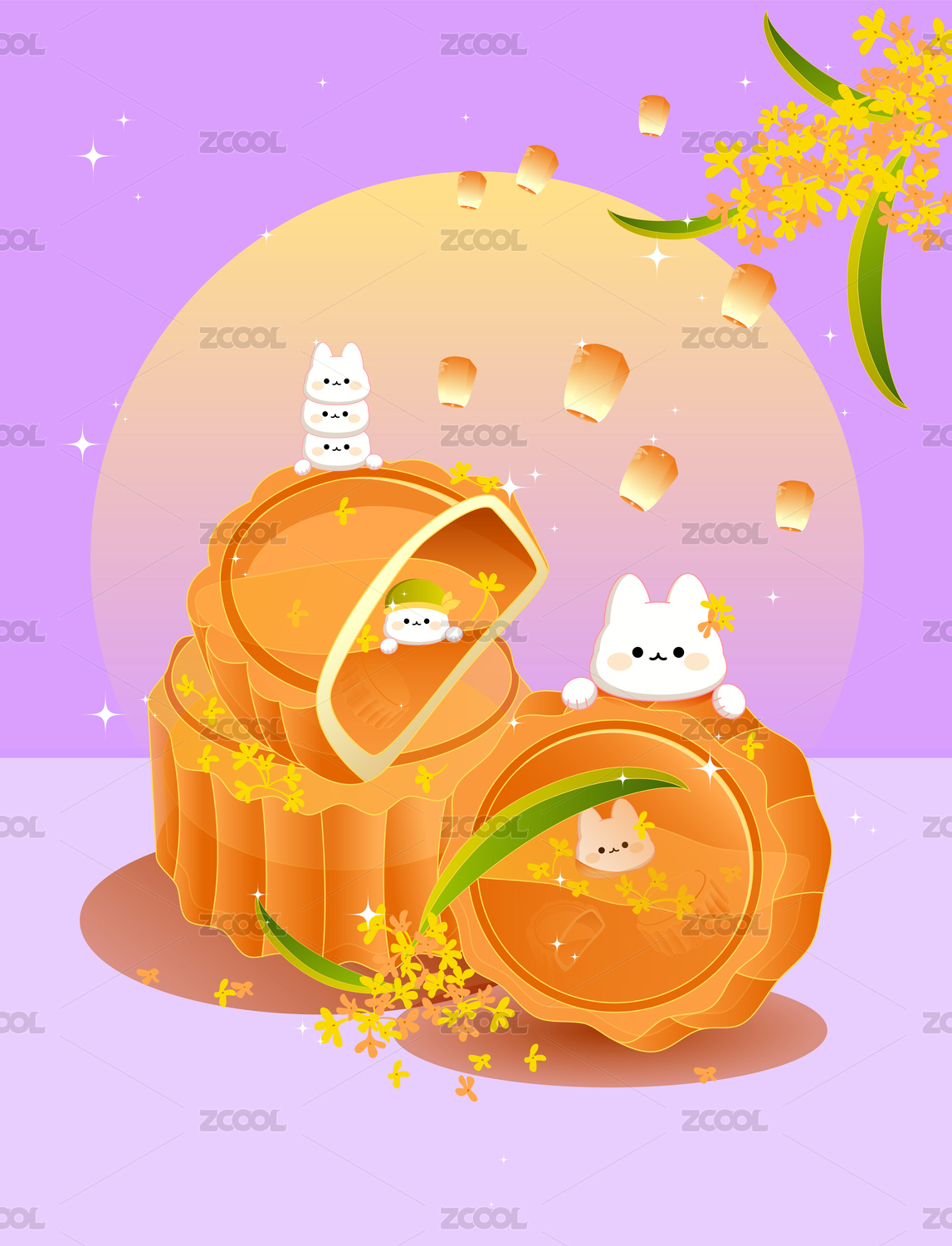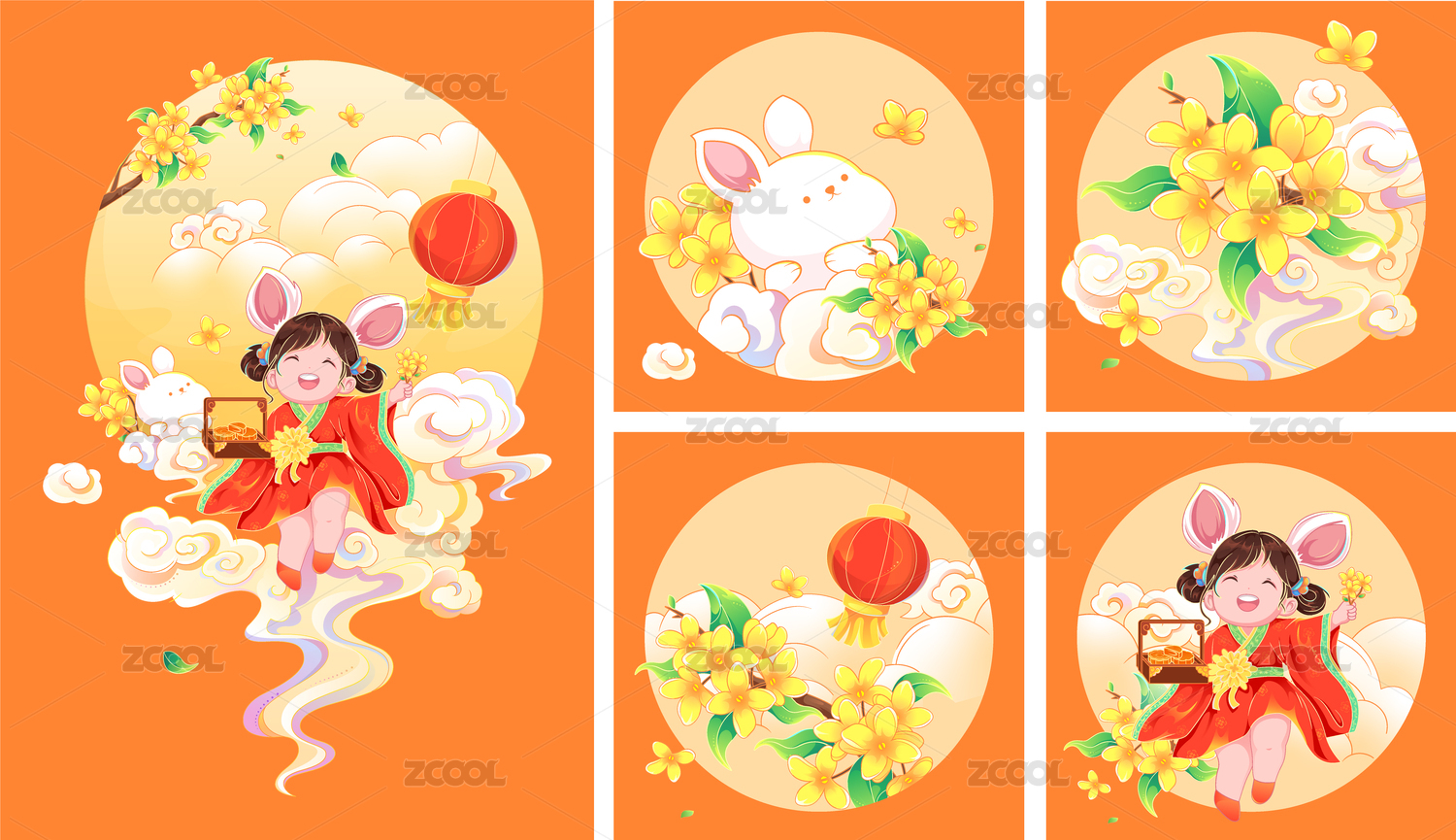 中秋佳節(jié) 八月十五明月玉兔山川河流星空 矢量 插畫