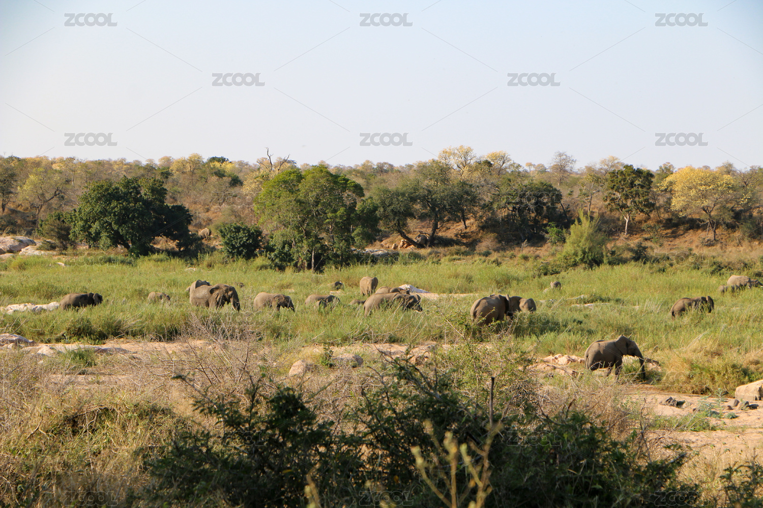 非洲草原上的非洲象群