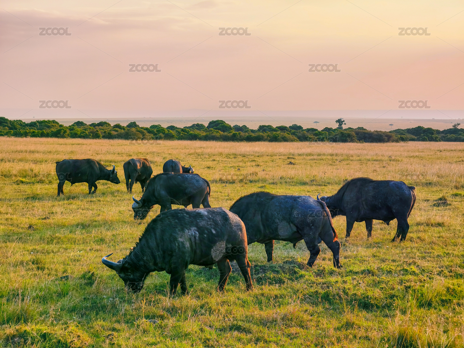 非洲草原上的水牛群