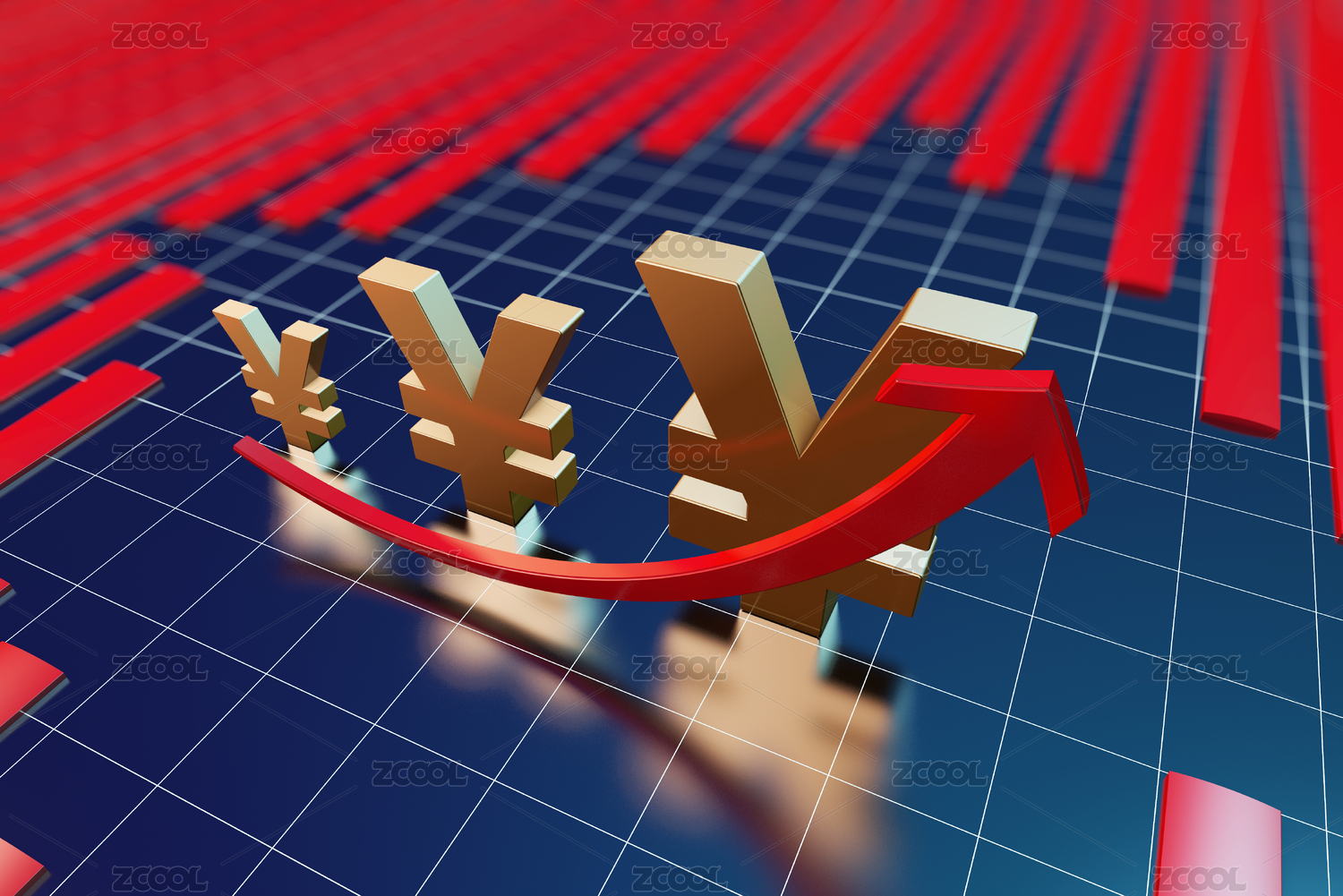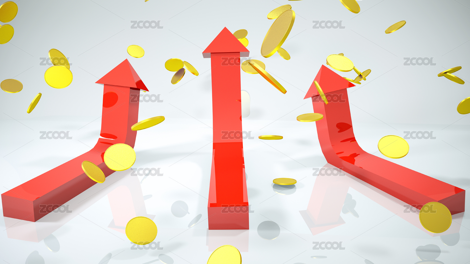 向上的箭頭搭配著大量的的金幣象征著金錢與商業(yè)的成功