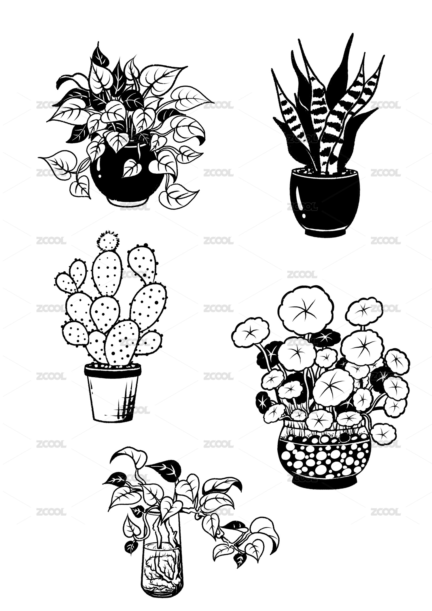 盆栽黑白裝飾畫