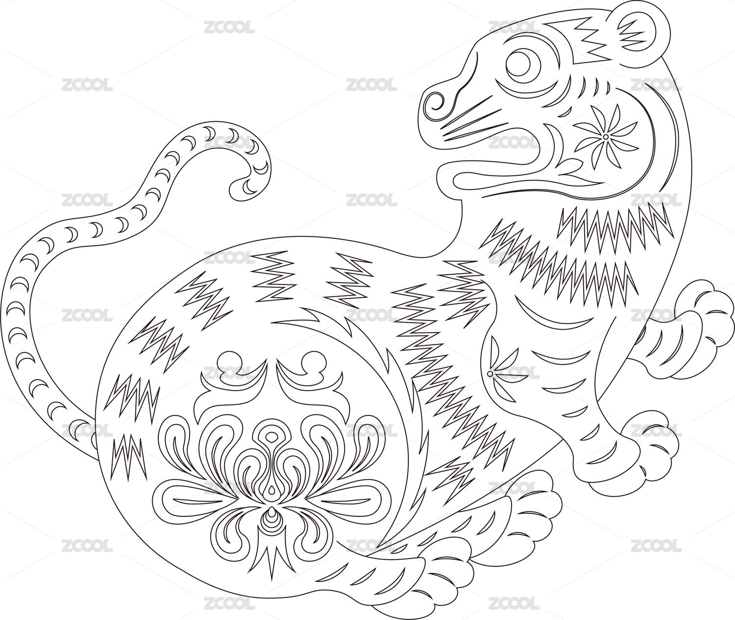 虎紋樣黑白裝飾畫