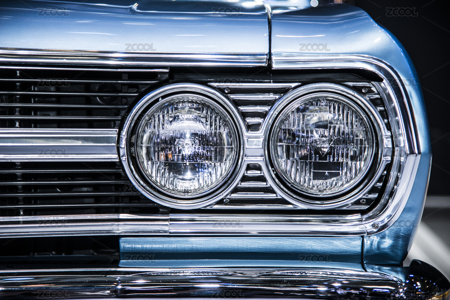 藍(lán)色汽車的大燈特寫(xiě)