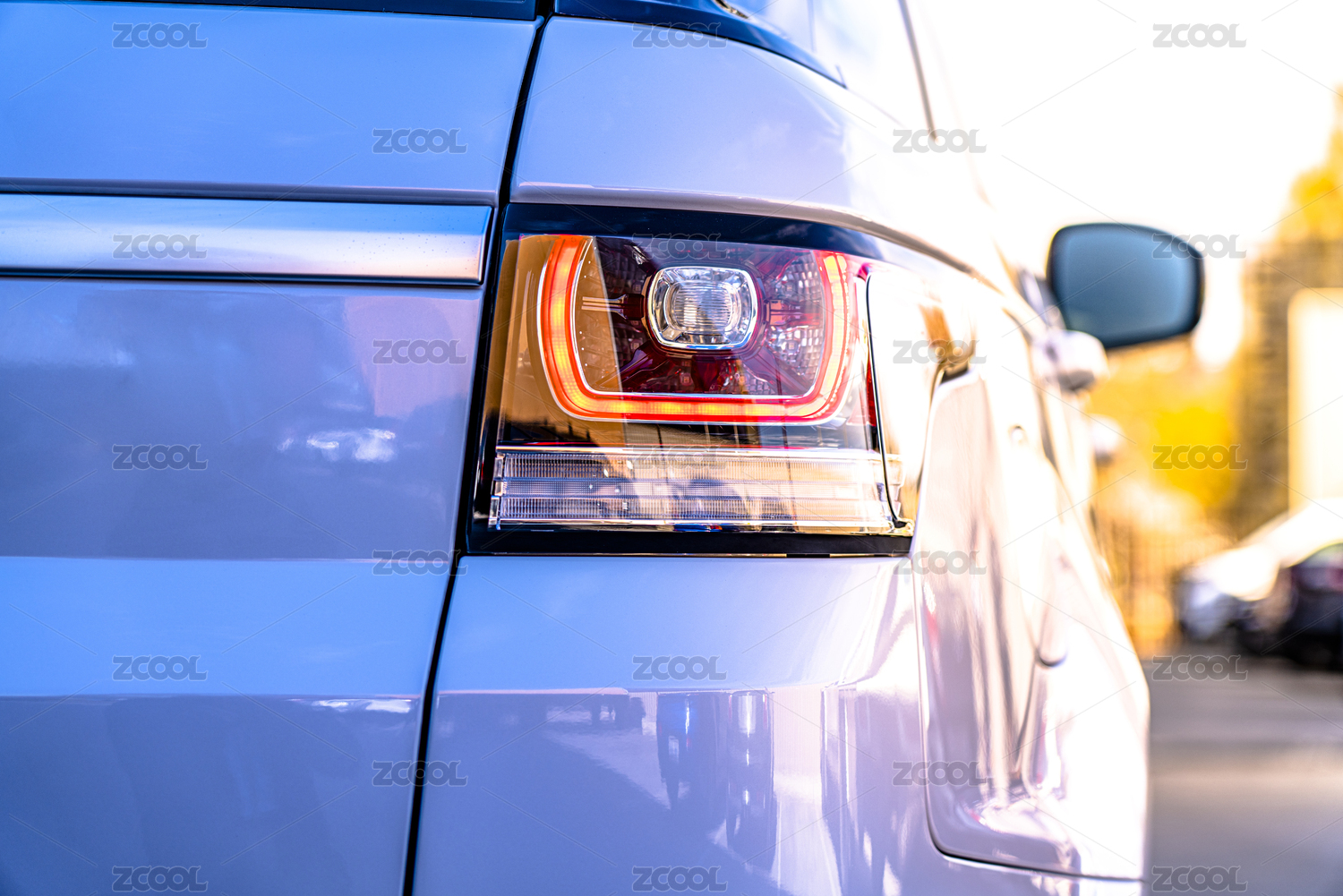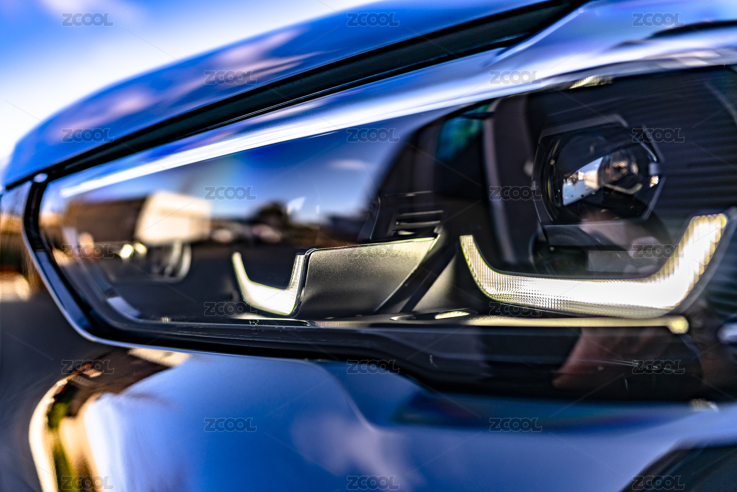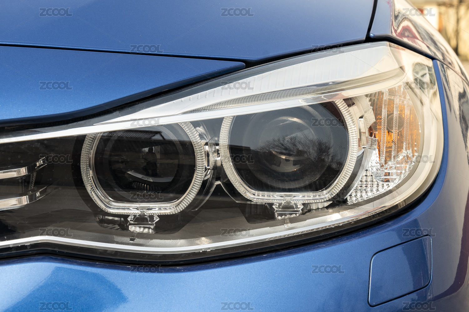 藍(lán)色豪車車燈特寫(xiě)
