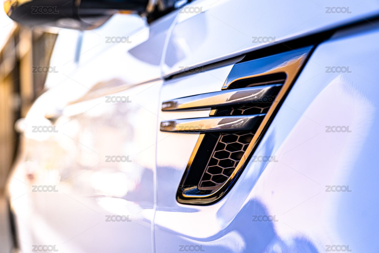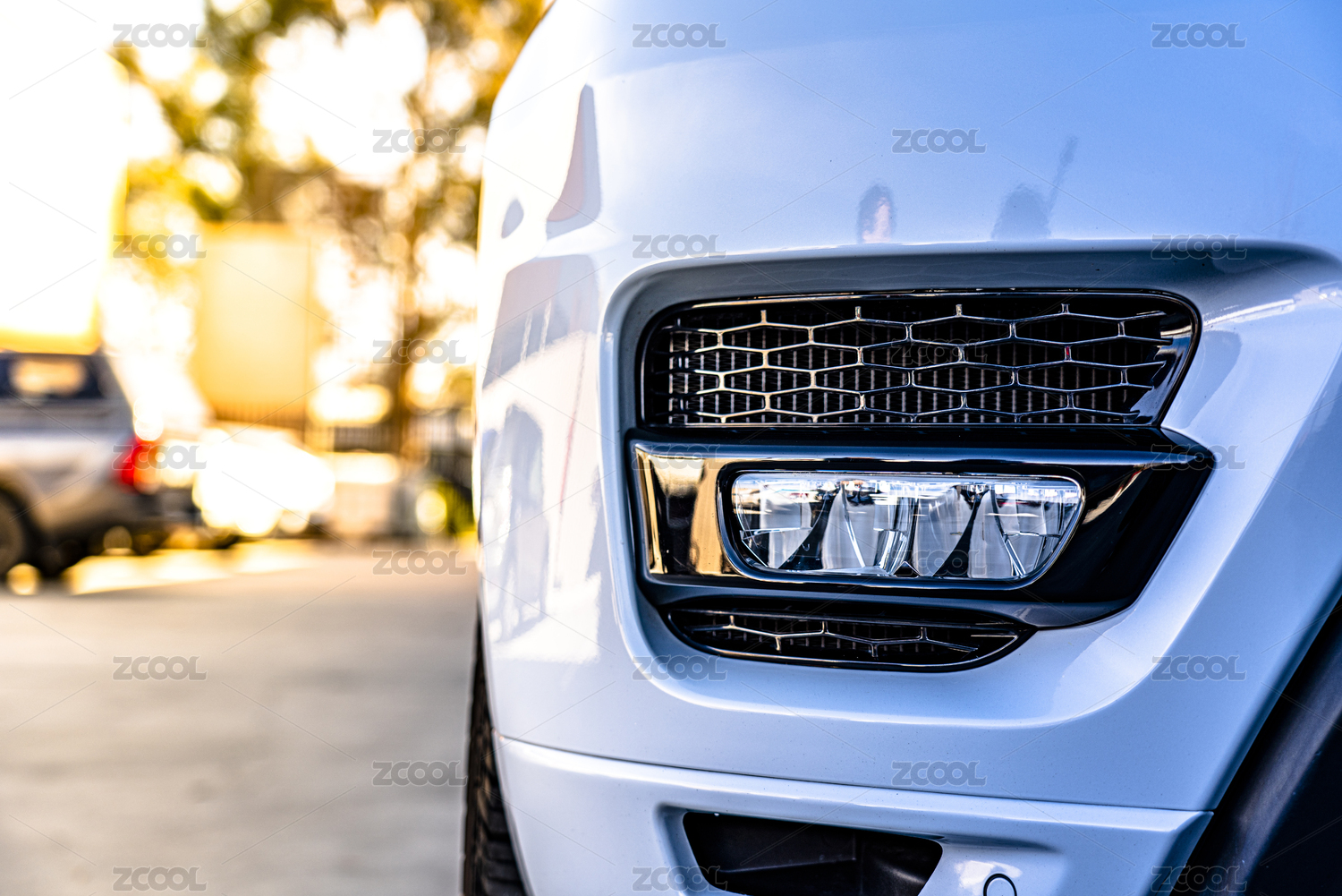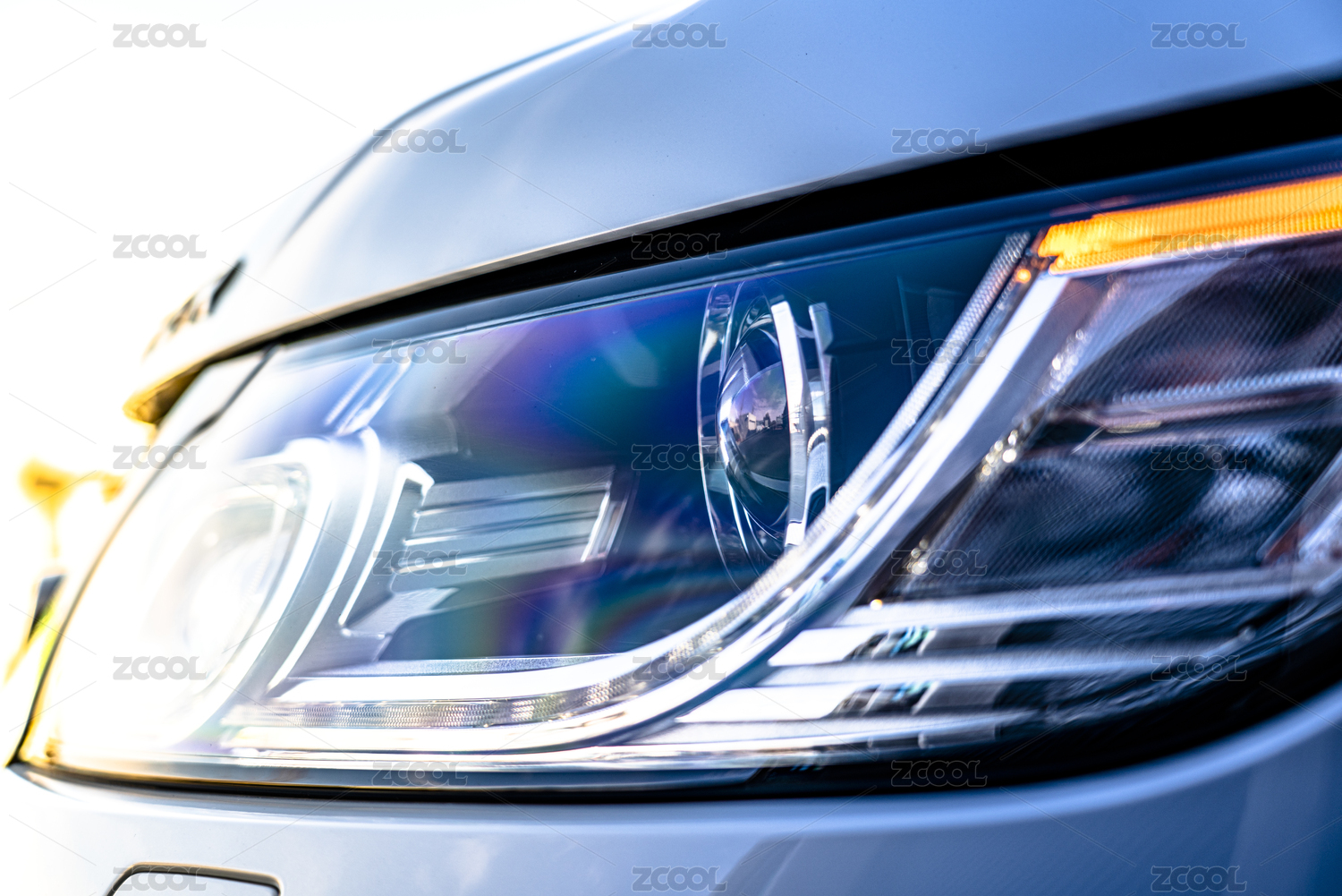 白色汽車車燈特寫(xiě)
