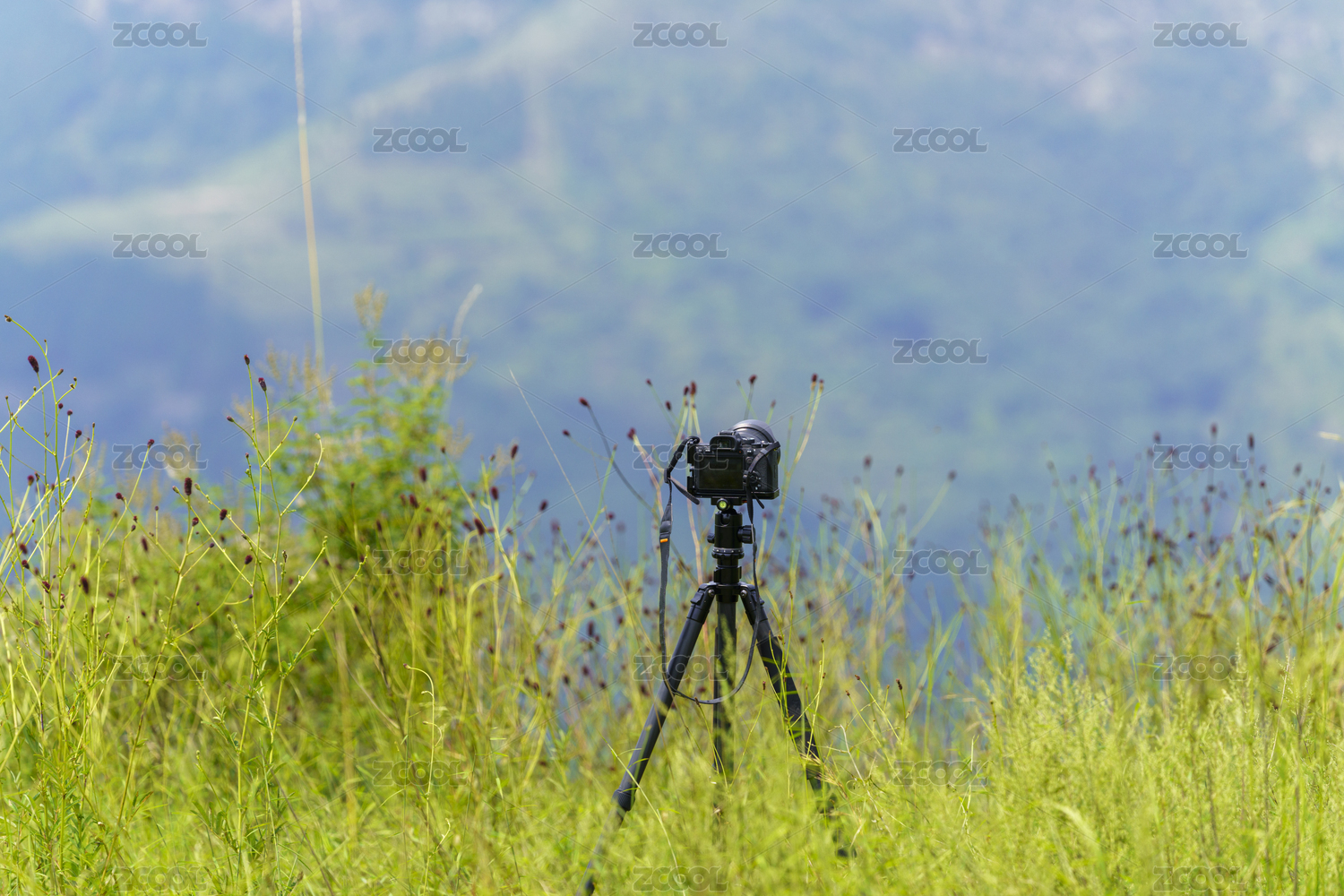 野草叢中的三腳架和相機(jī)