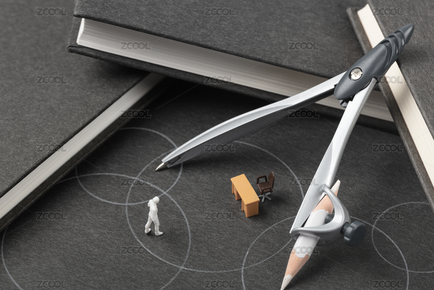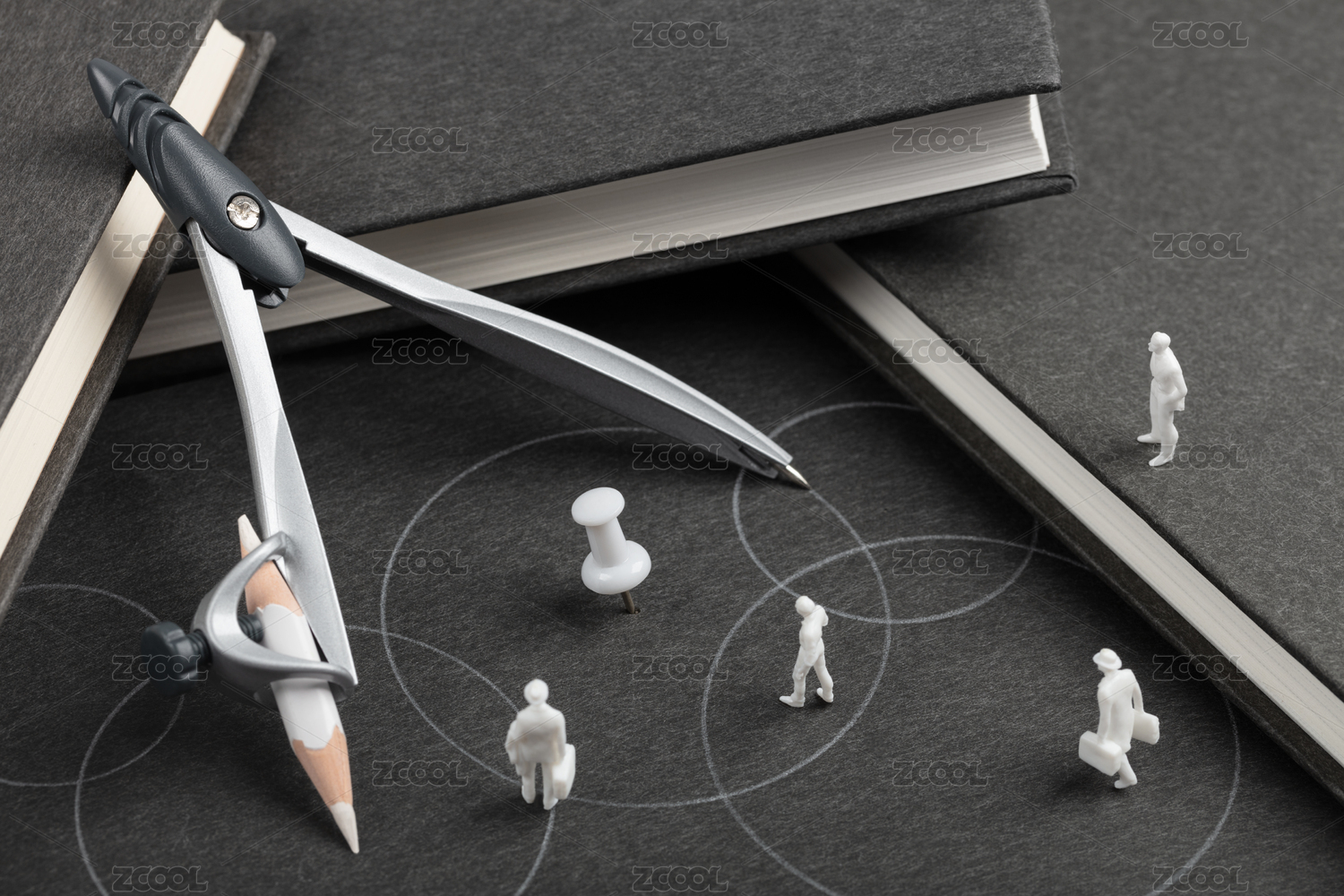 圓規(guī)黑色書本上的白色圓圈職業(yè)規(guī)劃招聘求職