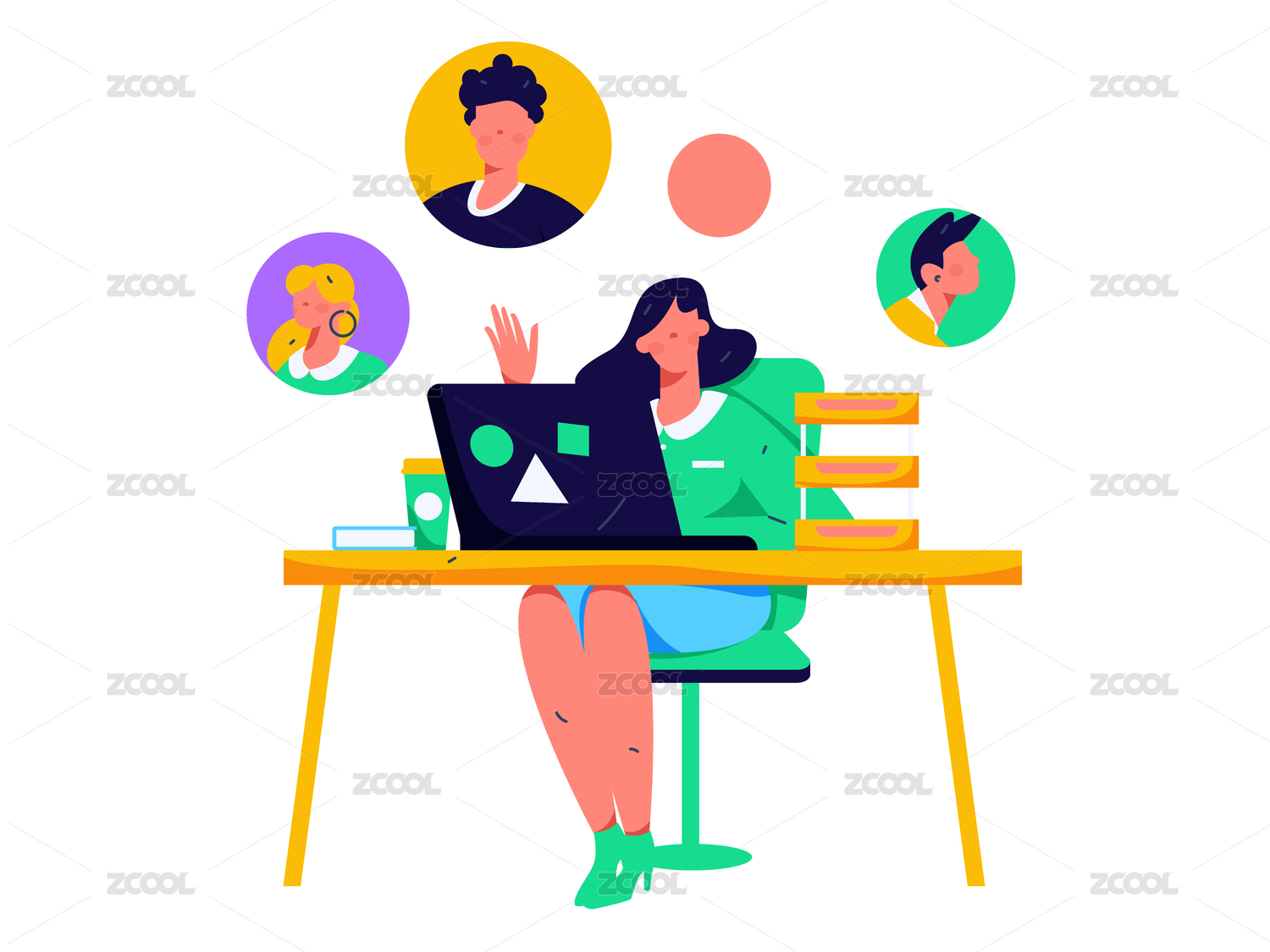卡通手繪職場(chǎng)求職白領(lǐng)晉升閃屏海報(bào)插畫