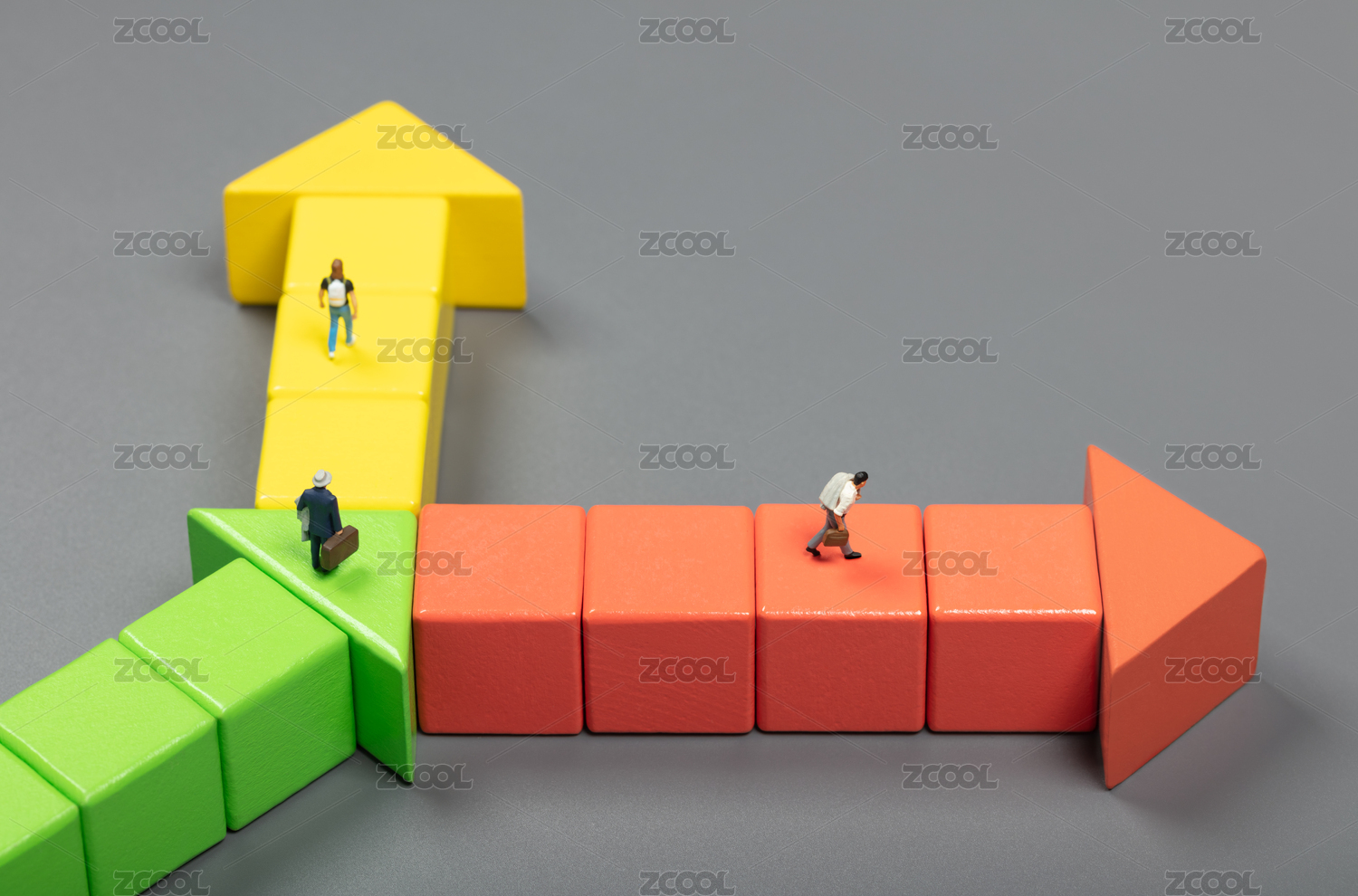 微縮創(chuàng)意積木箭頭選擇不同方向的商務(wù)男性