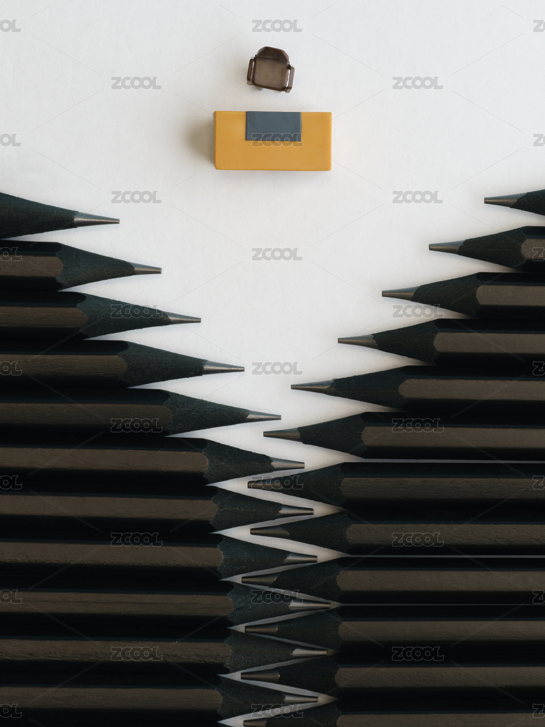 擺放整齊黑色鉛筆上方的空辦公桌微縮創(chuàng)意圖