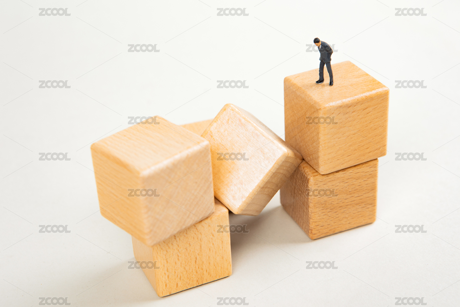 商人在積木前思考風(fēng)險(xiǎn)積木坍塌