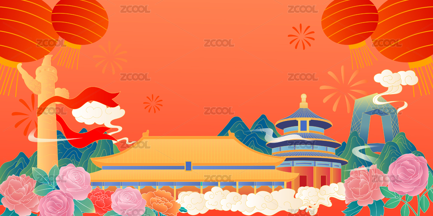 祝賀祖國繁榮富強插畫