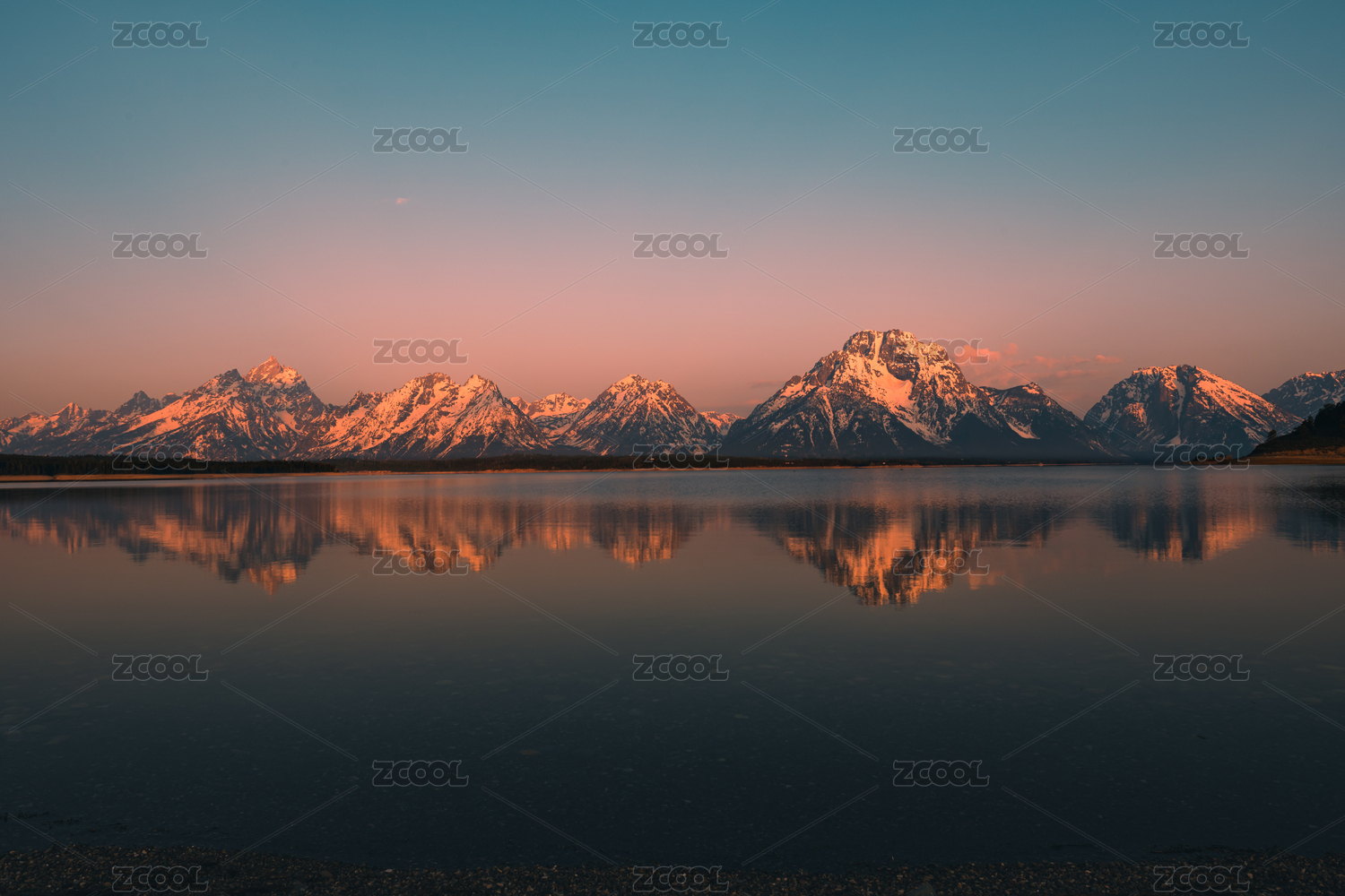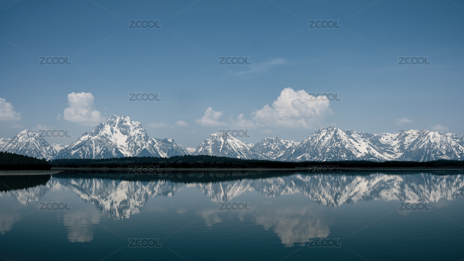 美國(guó)大提頓國(guó)家公園莫蘭山雪山倒映在水中