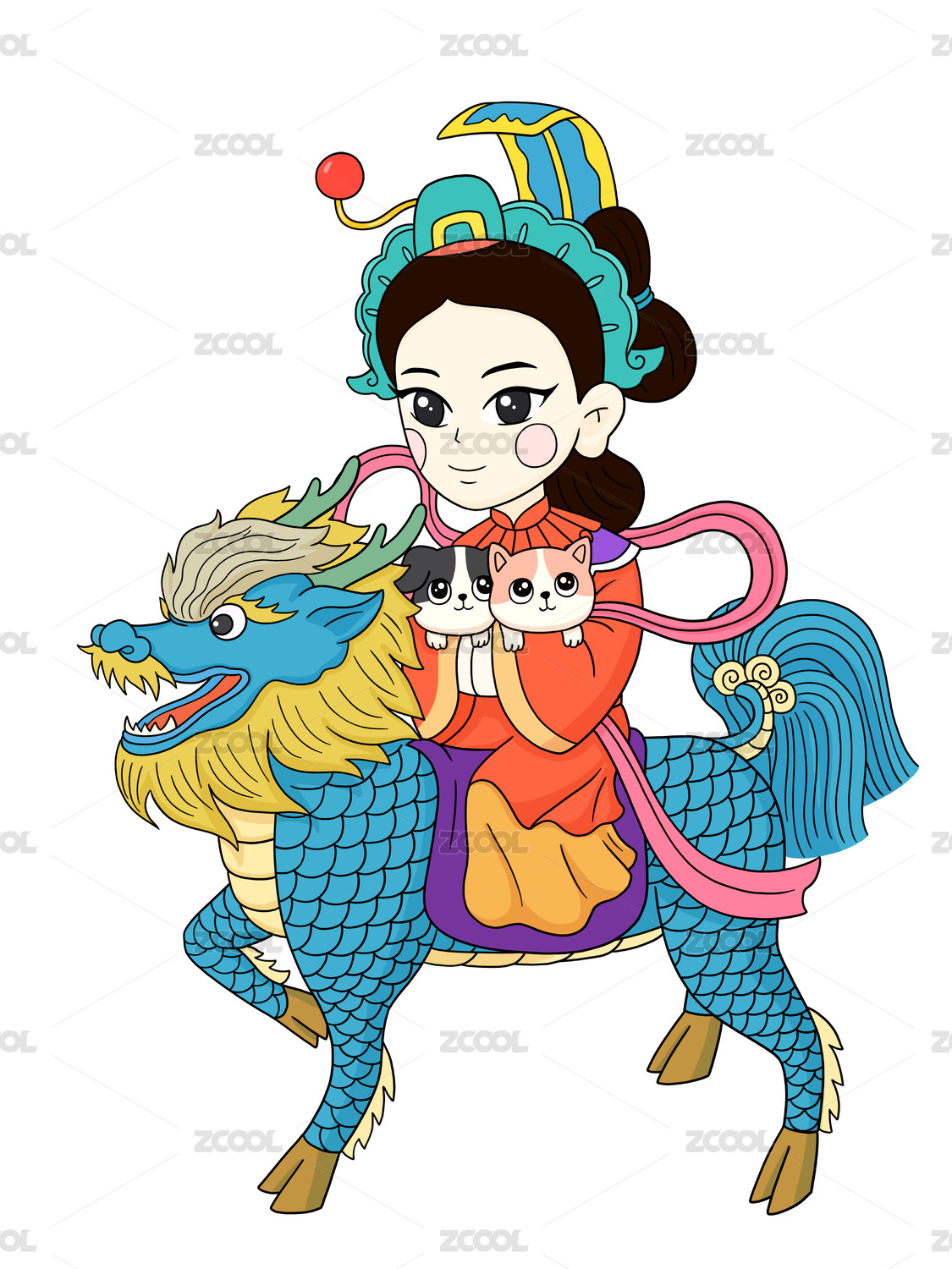 麒麟送子年畫國潮貓貓狗狗