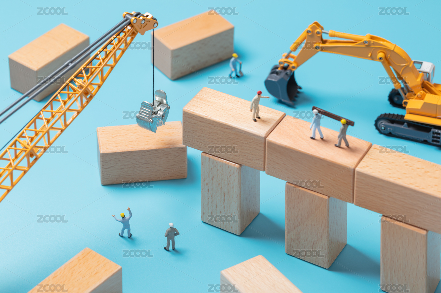 微縮創(chuàng)意工程機械與搭建橋梁的基建工人