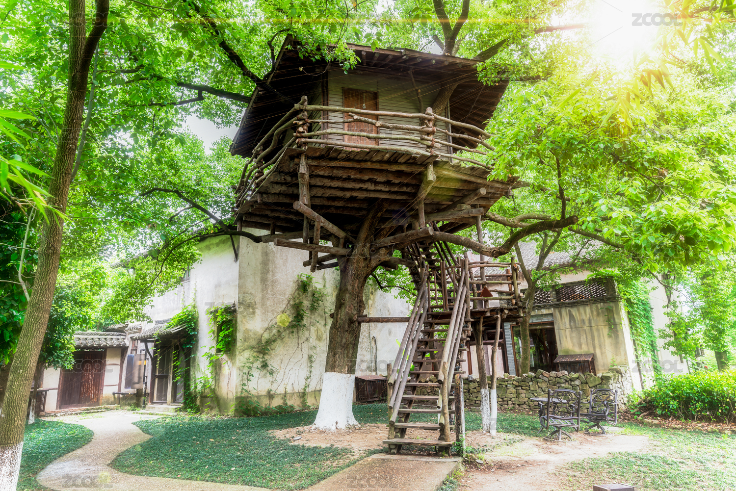 中國嘉興桐鄉(xiāng)烏鎮(zhèn)搭建在樹上的小木屋