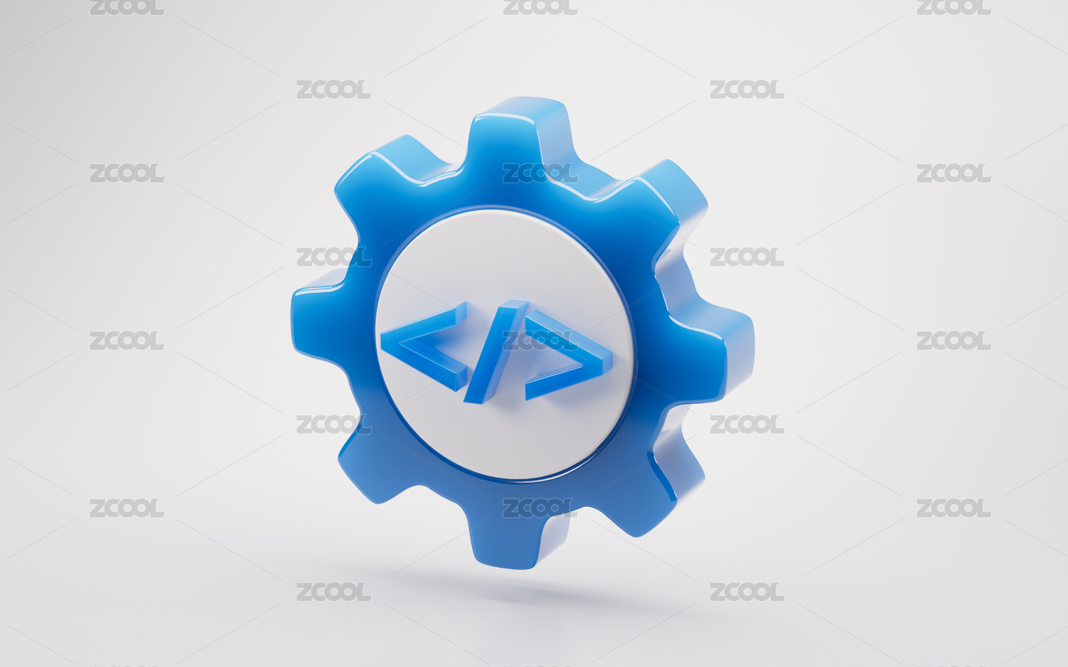 藍(lán)色商務(wù)齒輪外框圖標(biāo)三維渲染