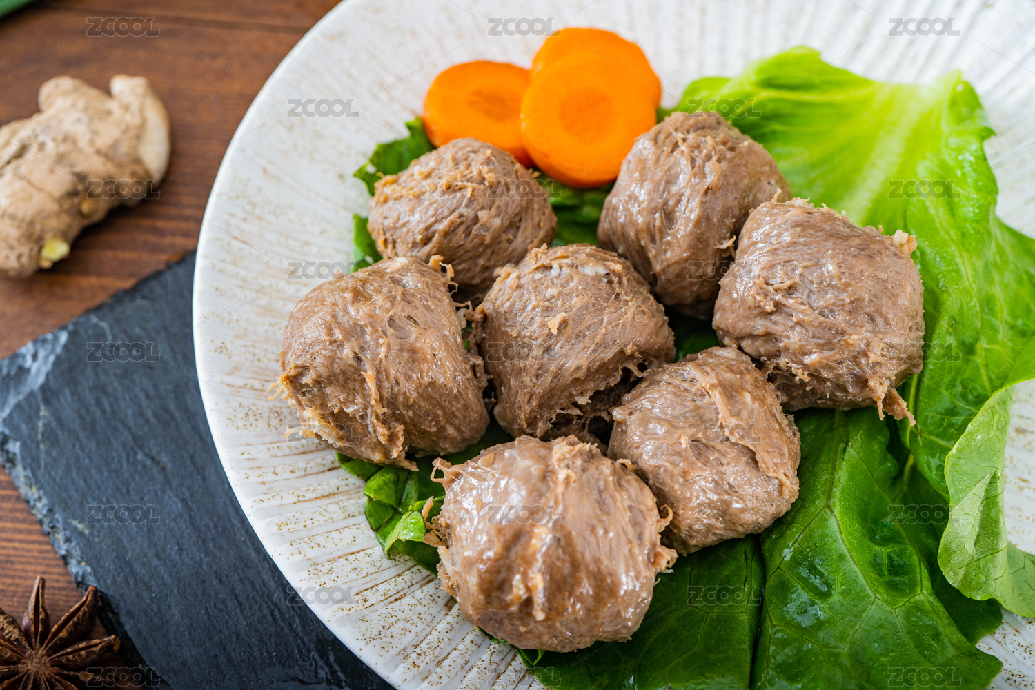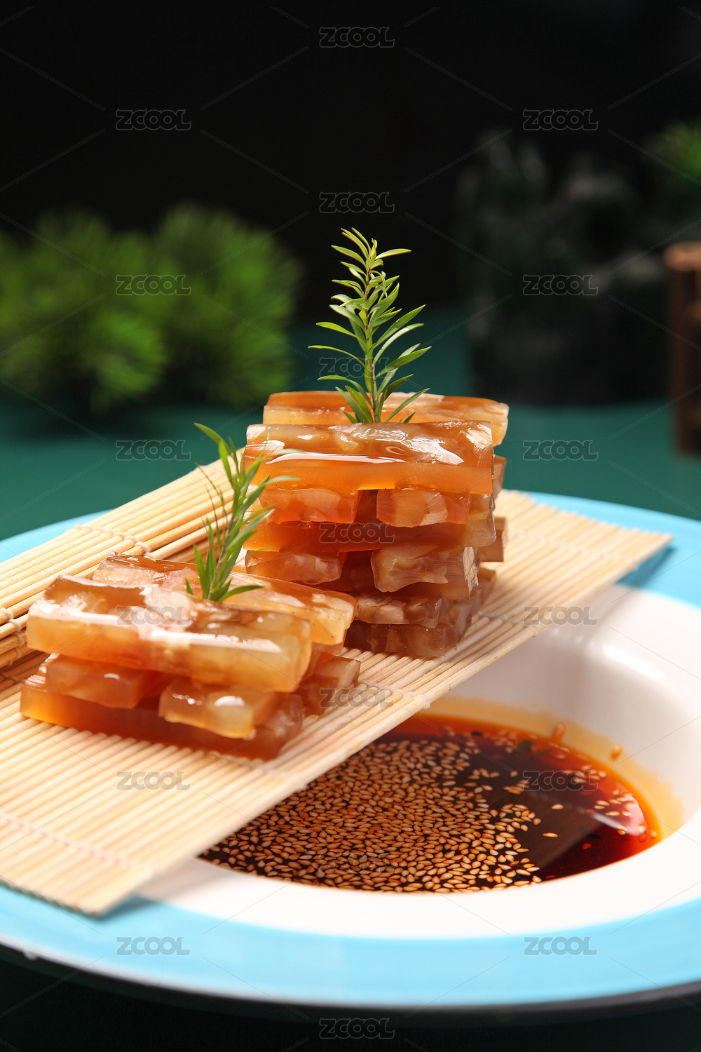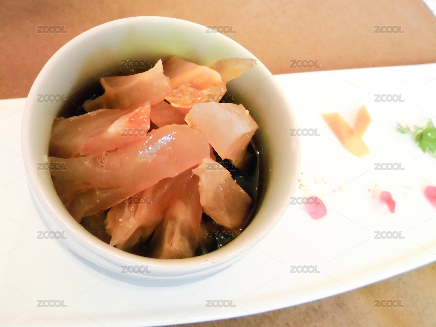 放在盤子中的牛筋切片