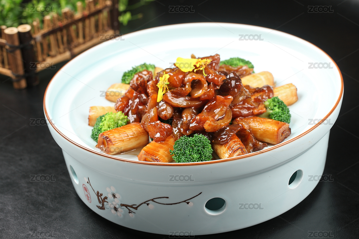 中國上海的一道熱菜——蔥烤海參牛筋