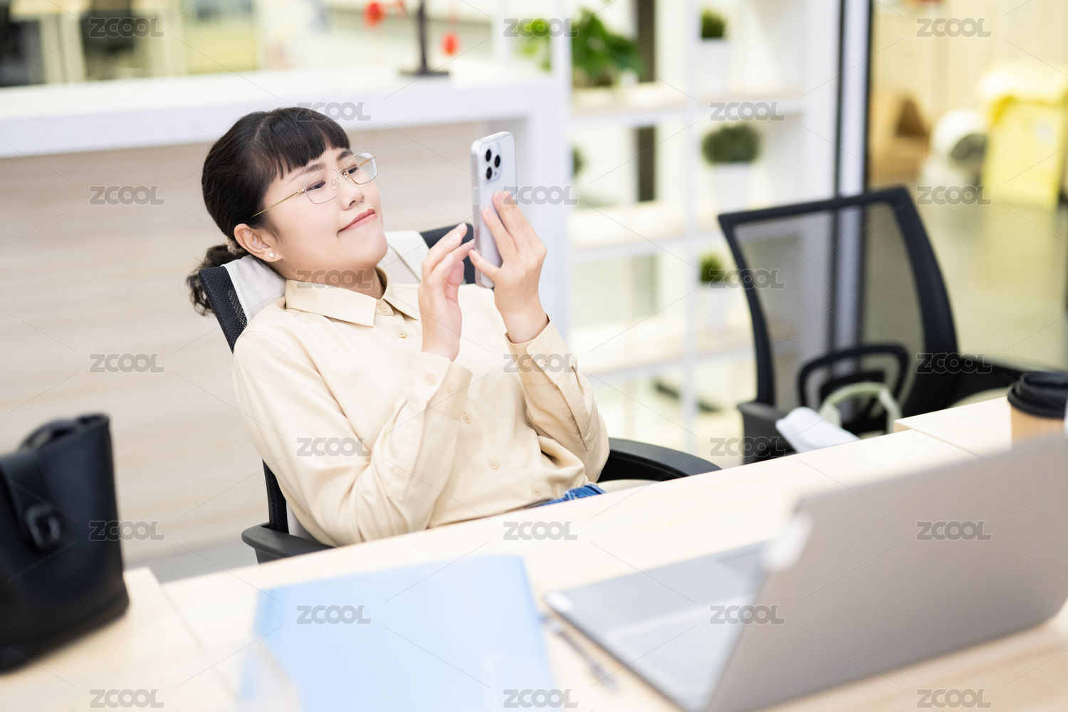 躺在辦公椅上玩手機(jī)的白領(lǐng)