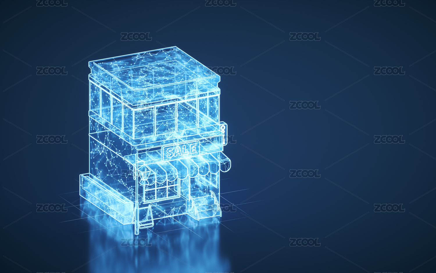 藍(lán)色線條結(jié)構(gòu)商店店鋪 3D渲染