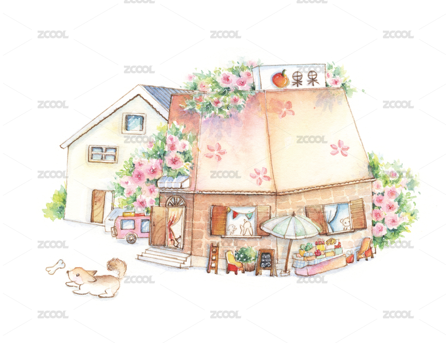 清新小商鋪系列可愛風(fēng)卡通房屋商店鋪旅館
