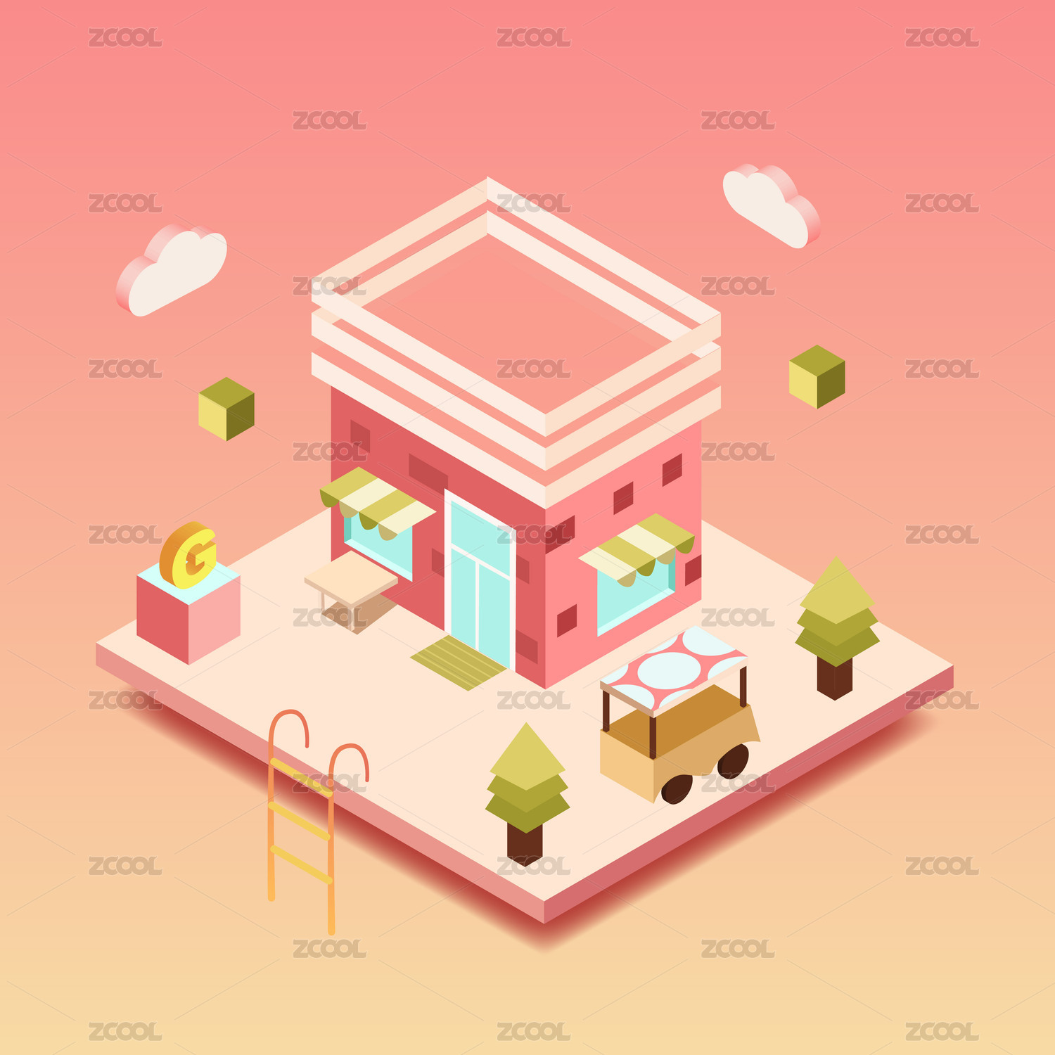 小清新矢量店鋪插畫