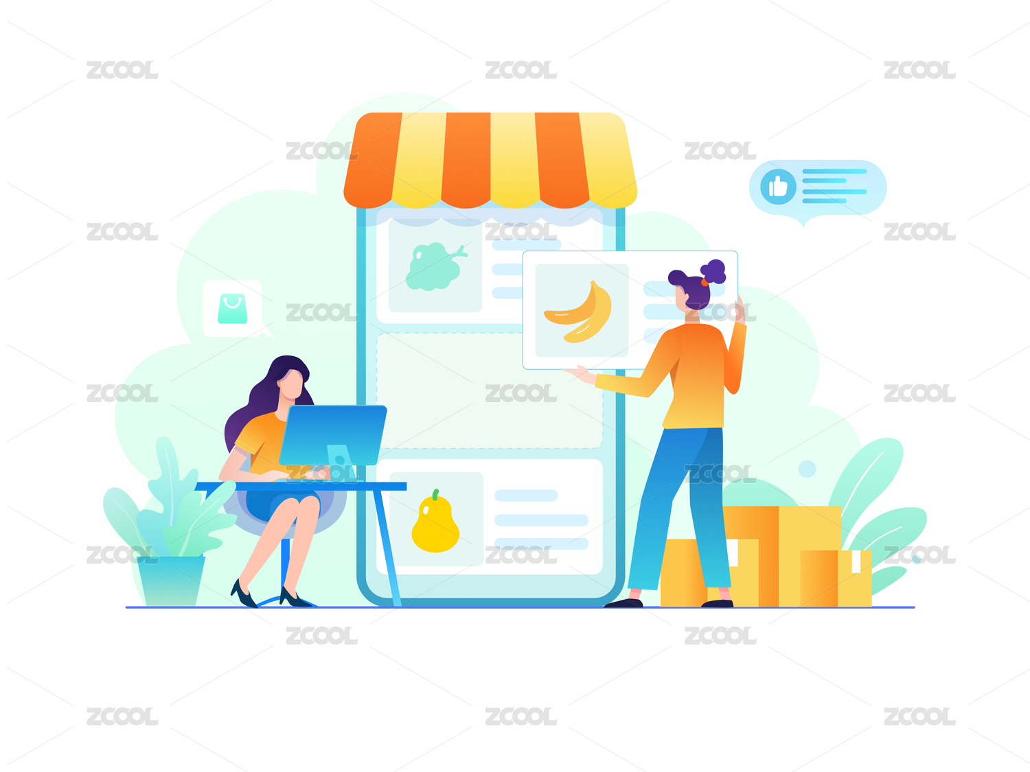 店鋪小清新風(fēng)格扁平風(fēng)插畫