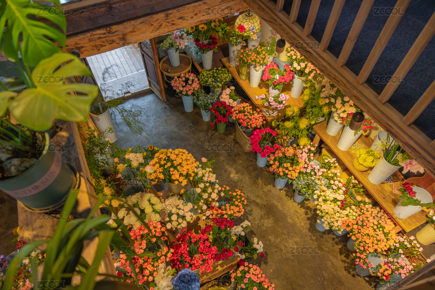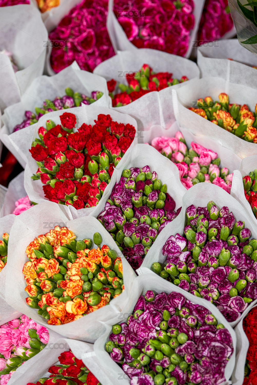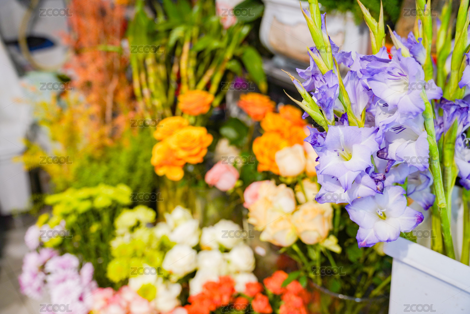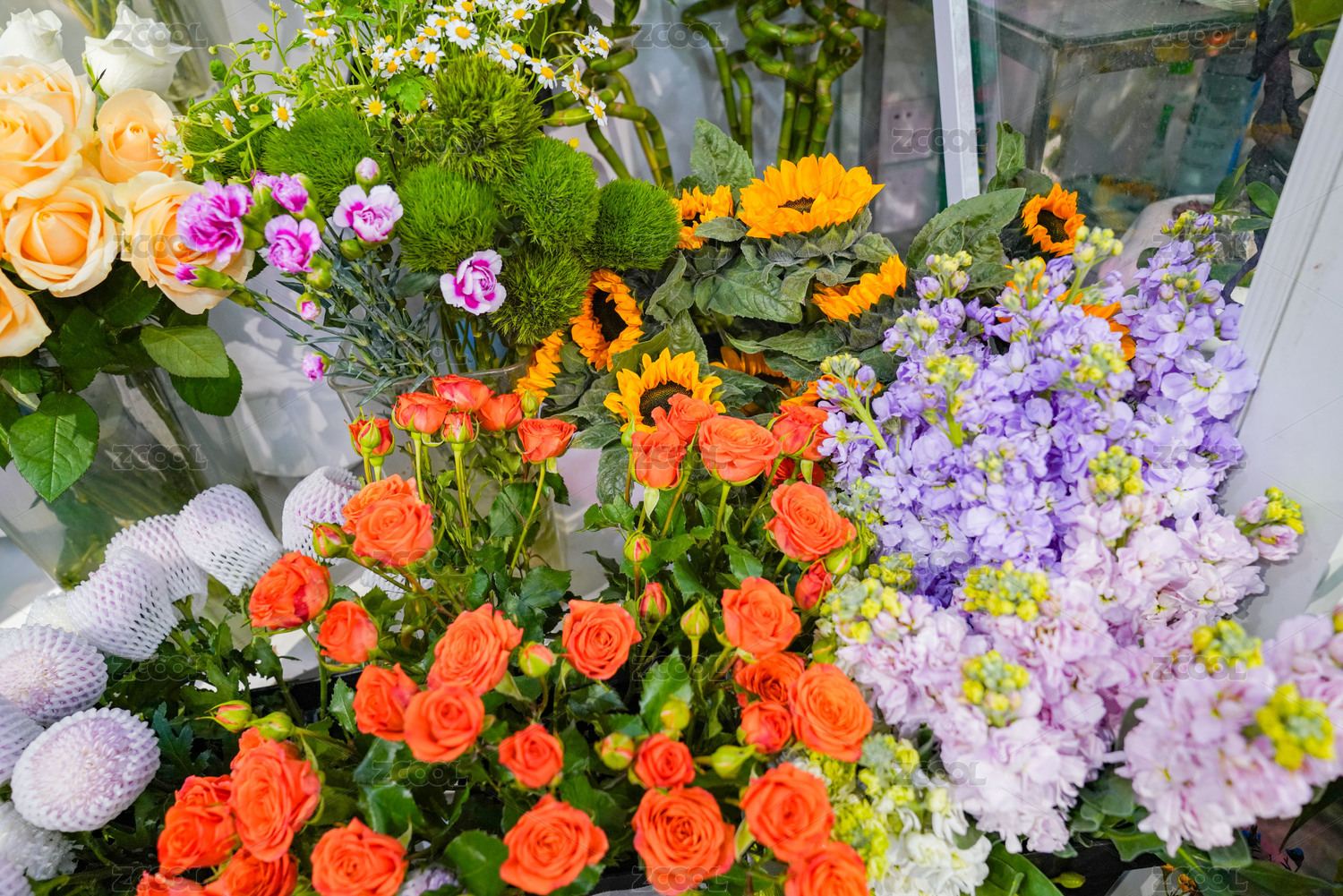 賣花店里售賣的各種顏色的玫瑰花和月季花