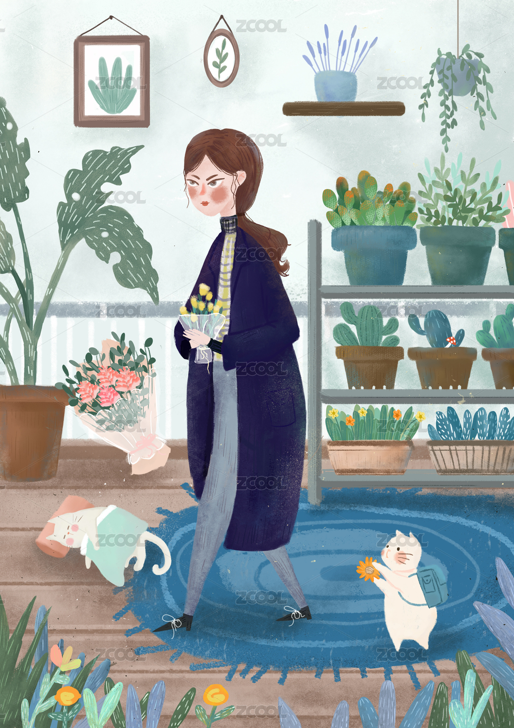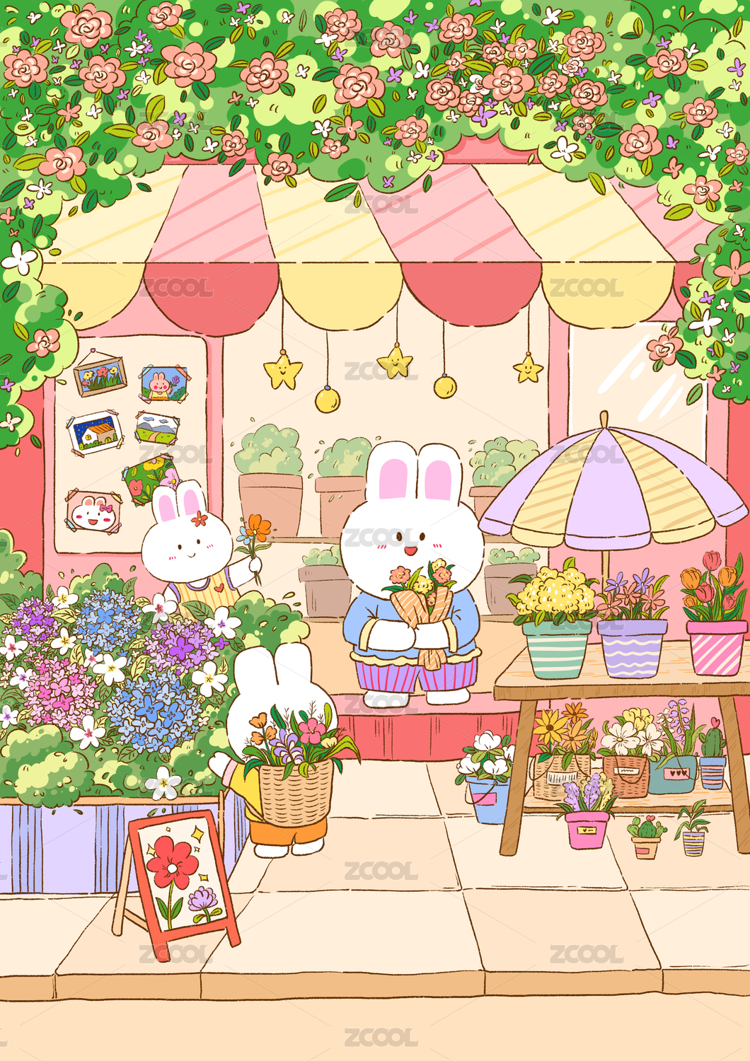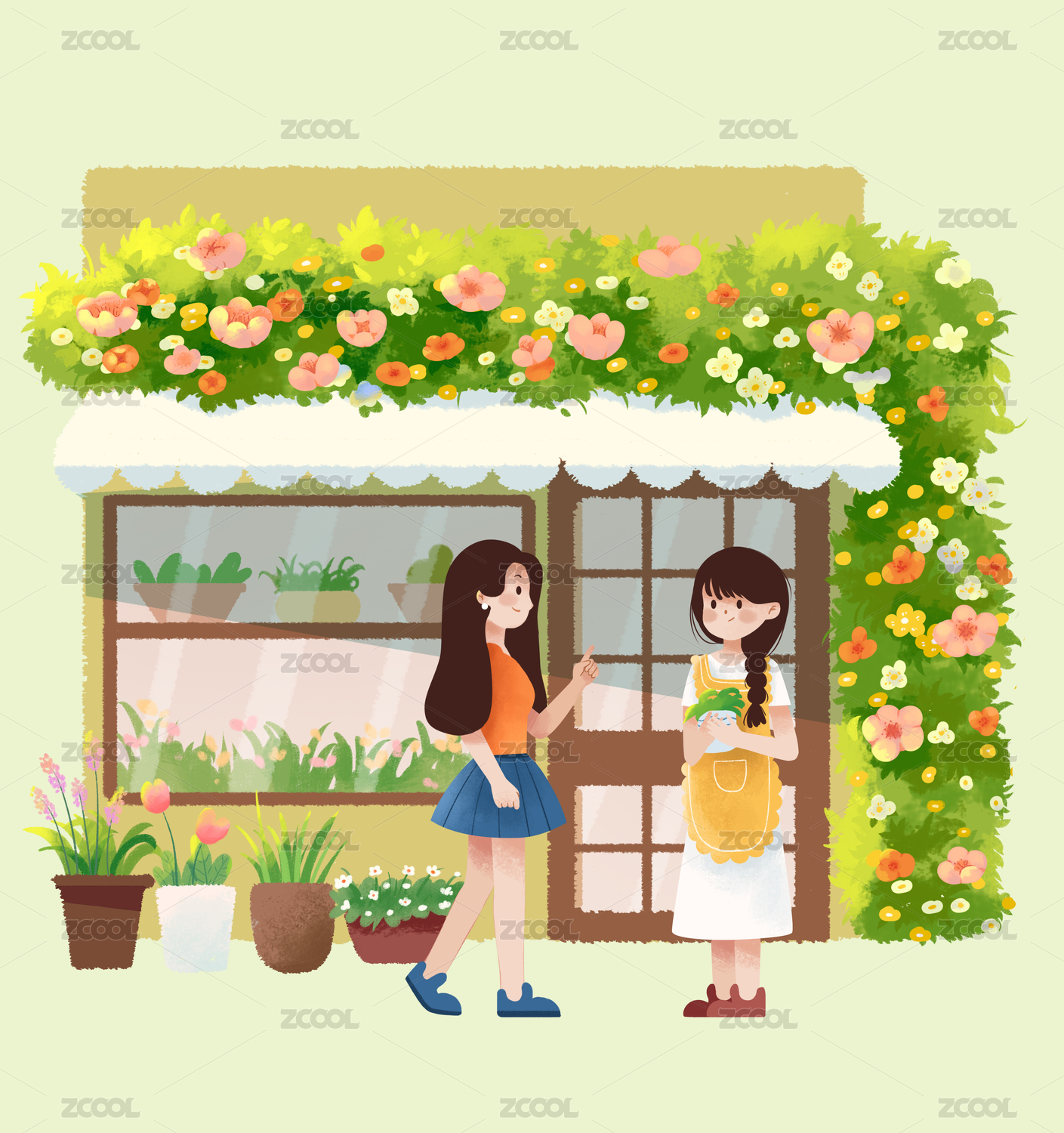 「愛」母親節(jié)-櫻花風(fēng)格 花店插畫
