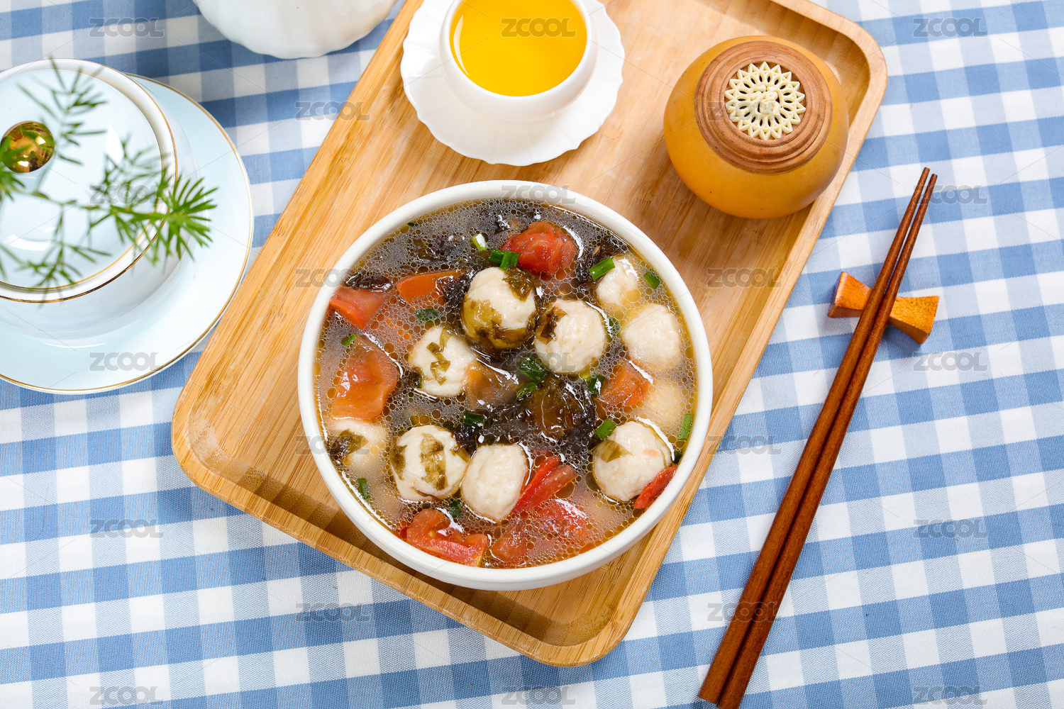 山西太原早餐美食丸子湯特寫(xiě)鏡頭