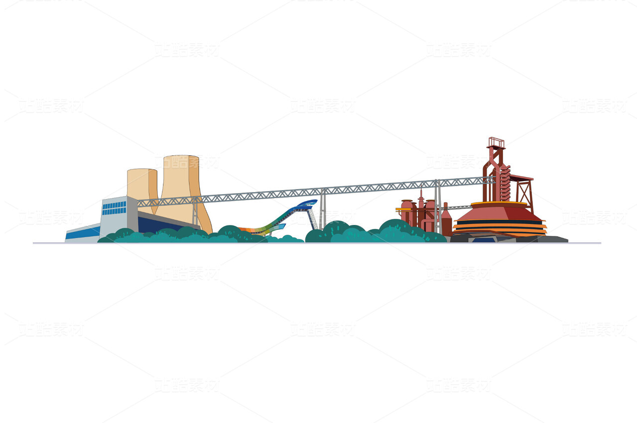北京工業(yè)文旅地標(biāo)首鋼園景觀扁平插畫PNG免摳超高清圖