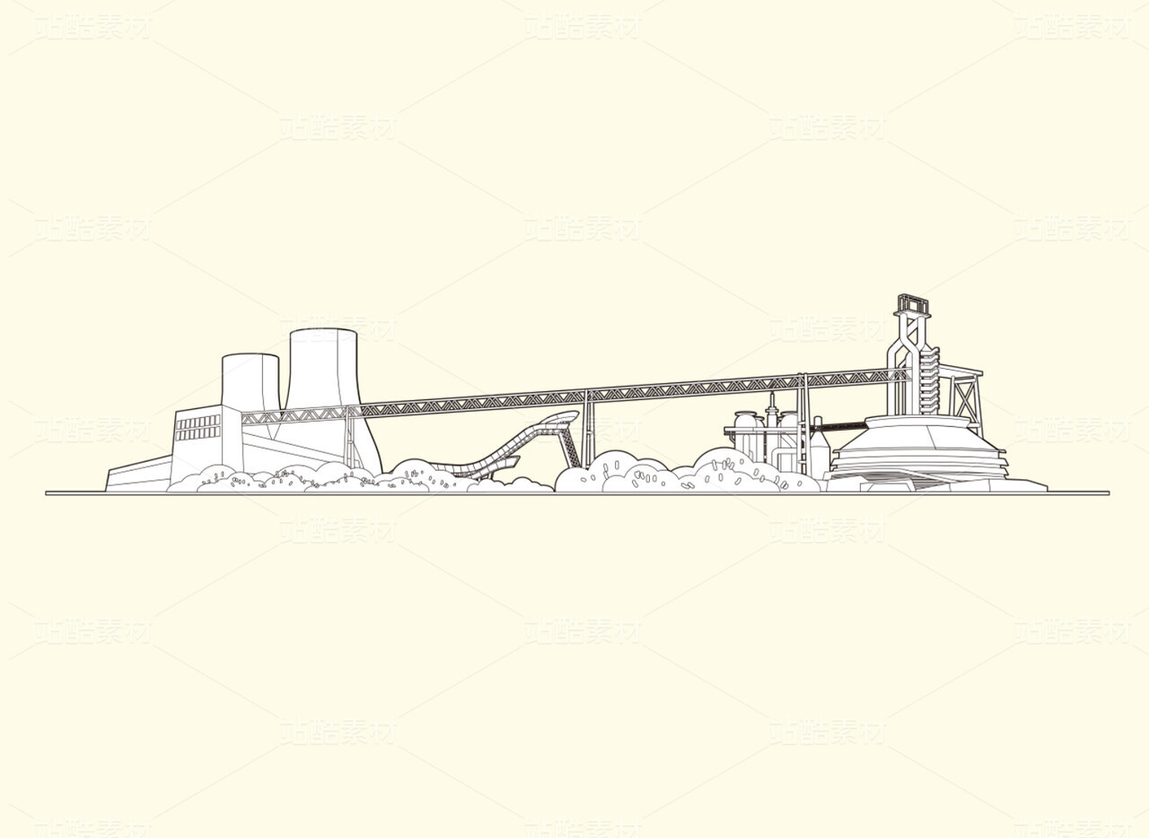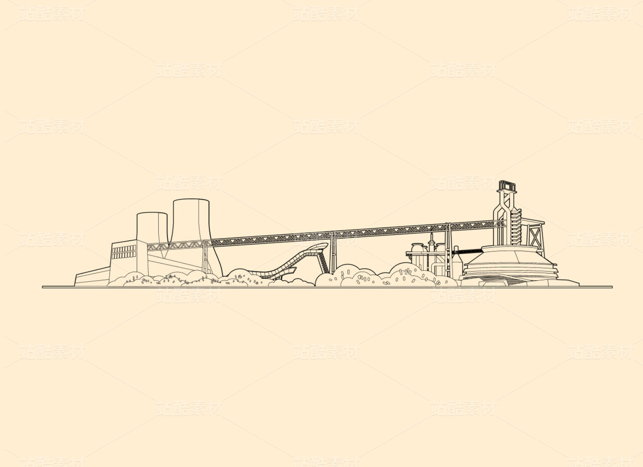 北京工業(yè)文旅地標(biāo)首鋼園景觀線稿插畫PNG免摳超高清圖