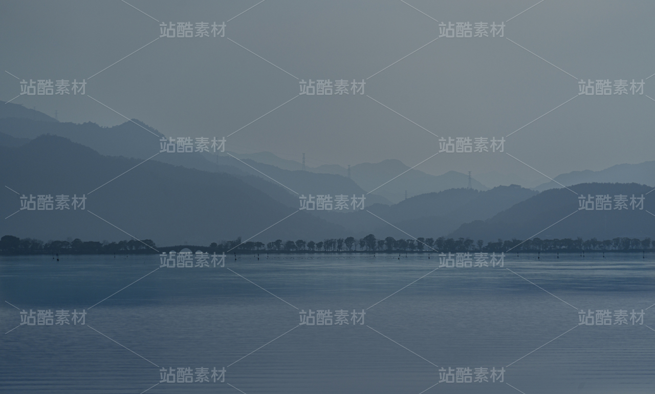 東錢湖層疊山巒東方水墨靜謐悠遠(yuǎn)水面平靜如鏡