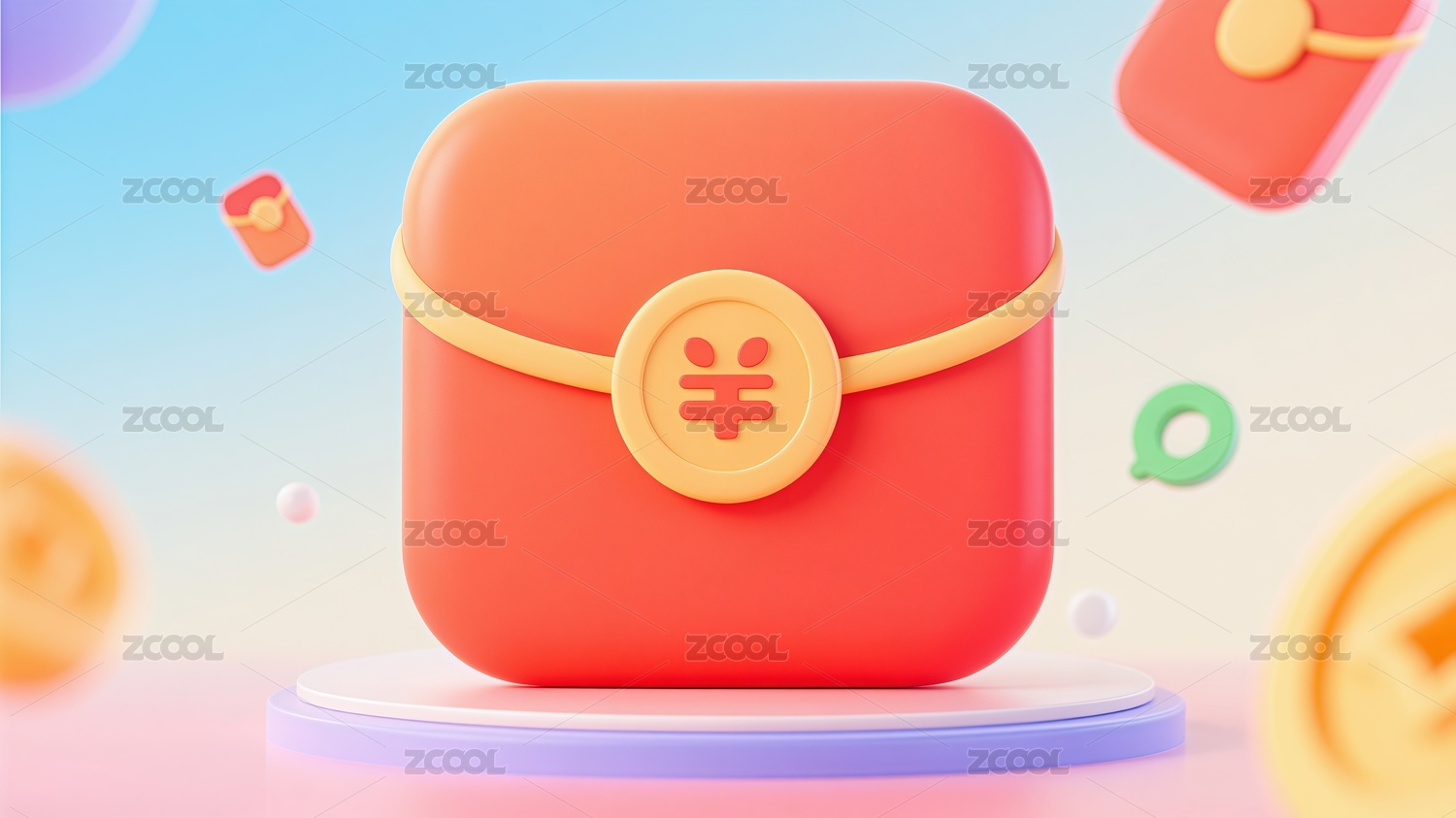 3D風(fēng)格電商紅包展示插畫