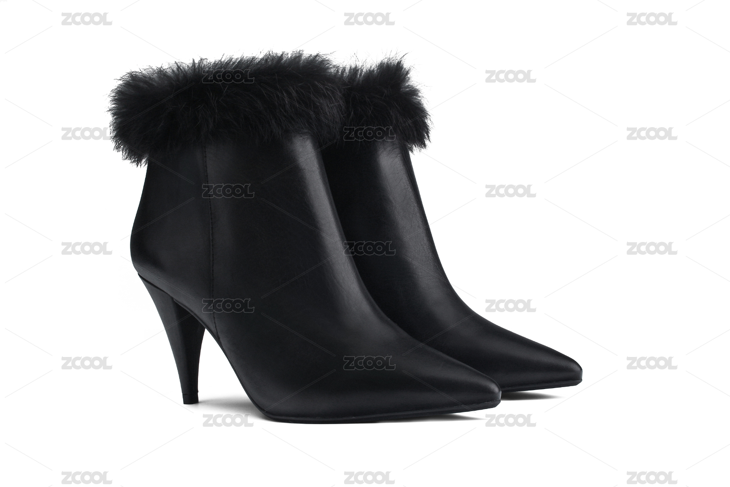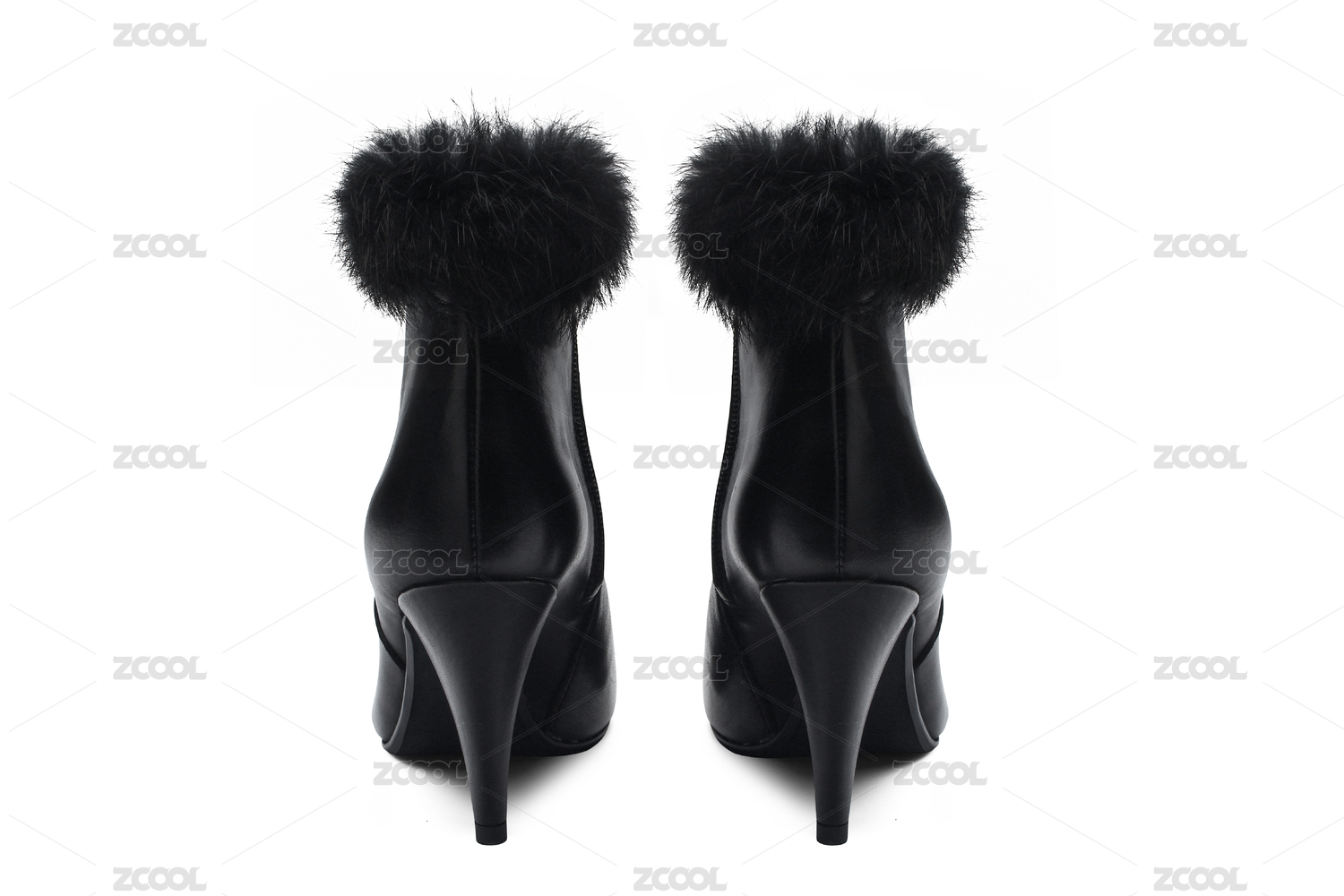 白色背景時(shí)尚 黑色女鞋 冬天毛毛鞋
