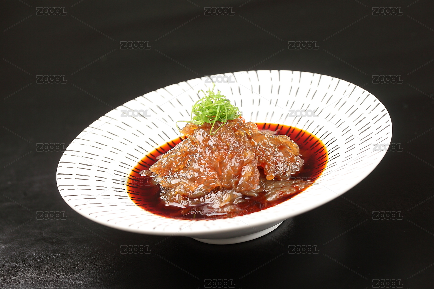 桌面上的盤子里的美味可口的海蜇皮