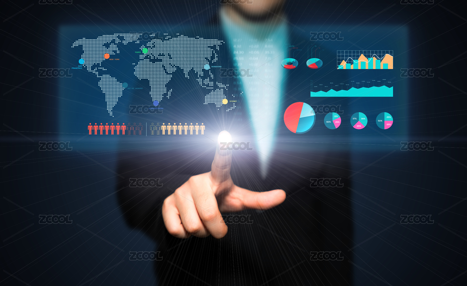 商務(wù)金融人士用手指著屏幕觸控概念