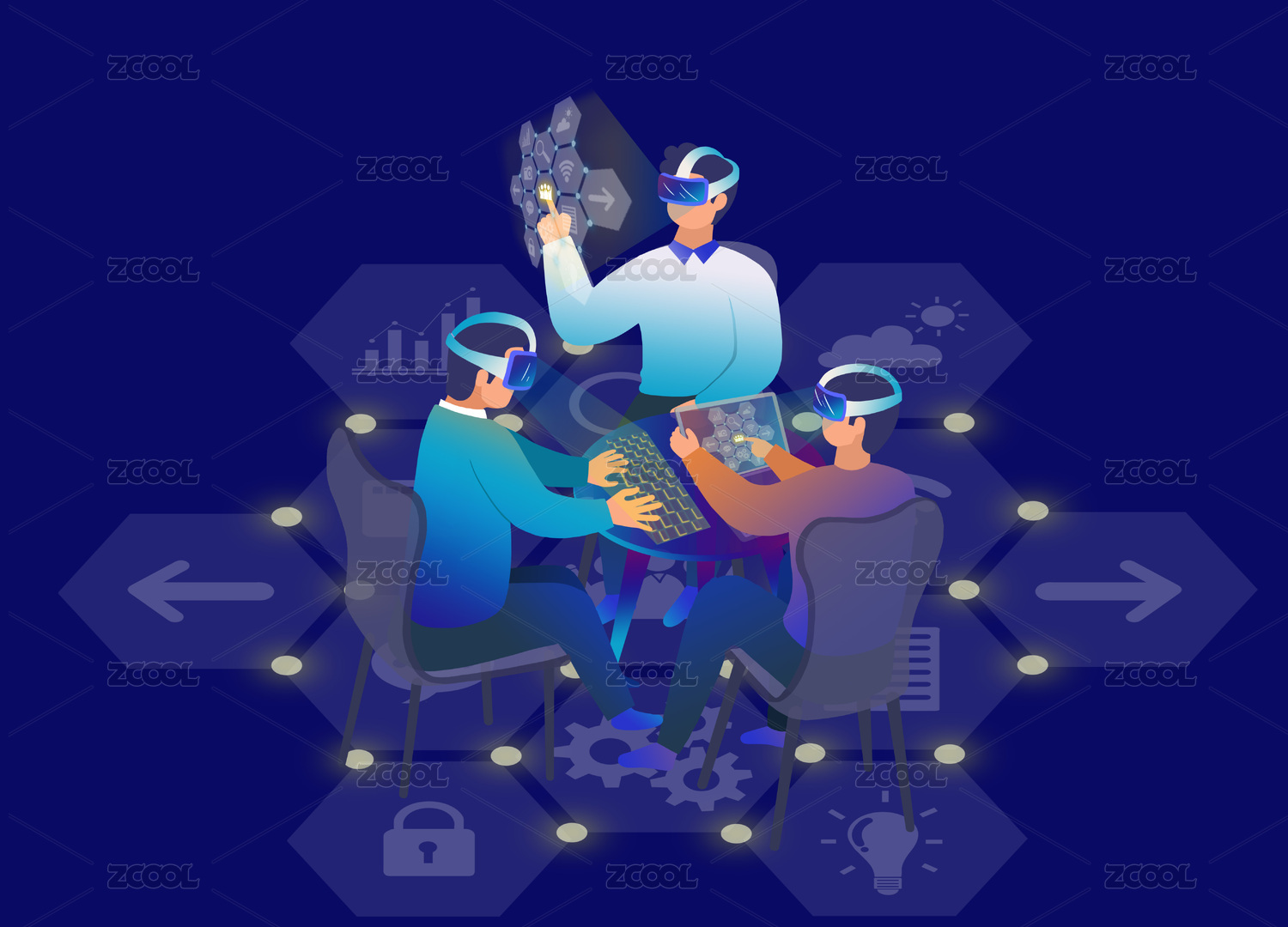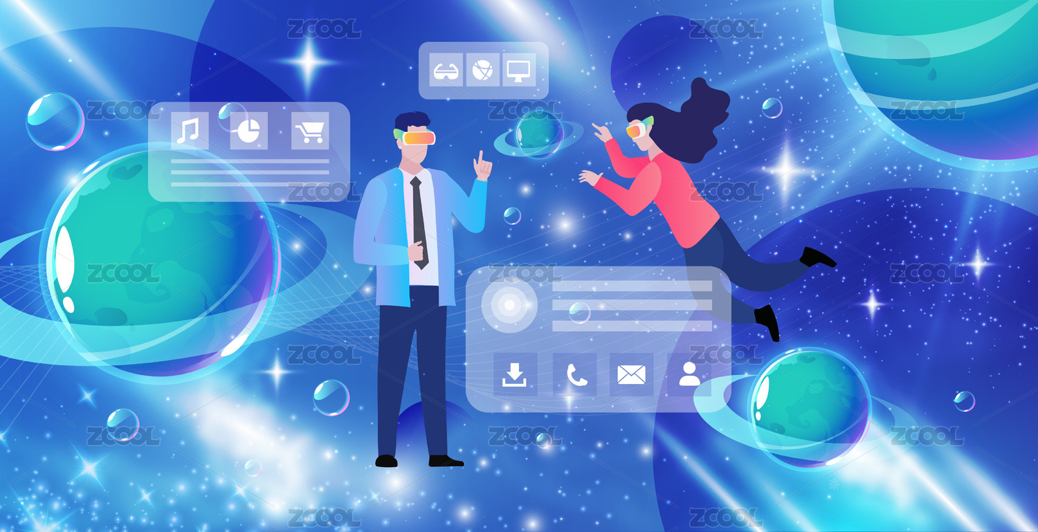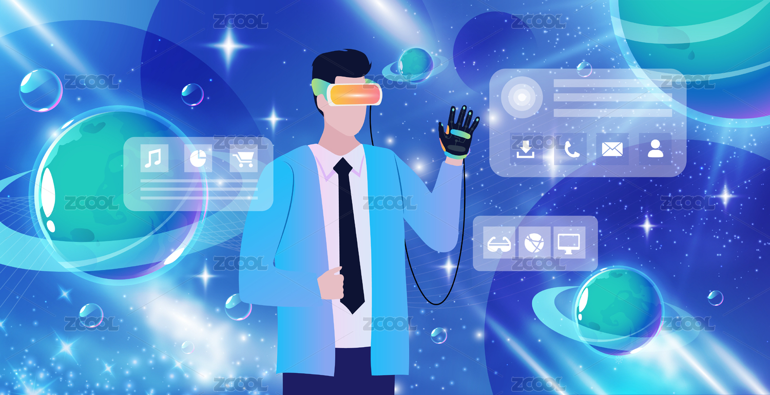 元宇宙VR科技虛擬現(xiàn)實(shí)觸控矢量插畫