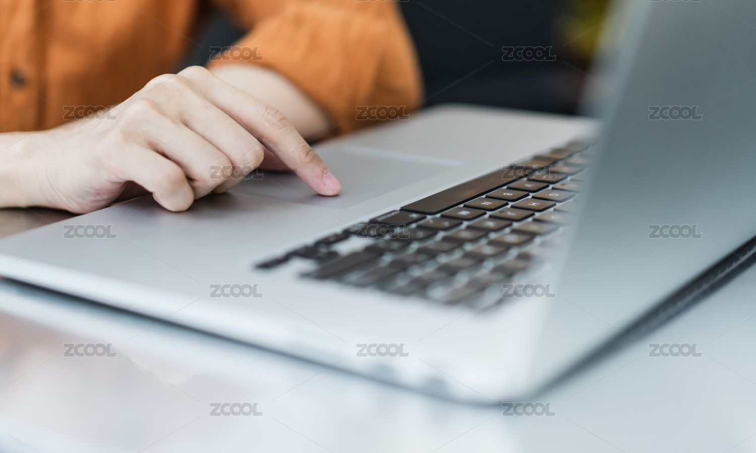 一只手在使用筆記本電腦觸控板的特寫
