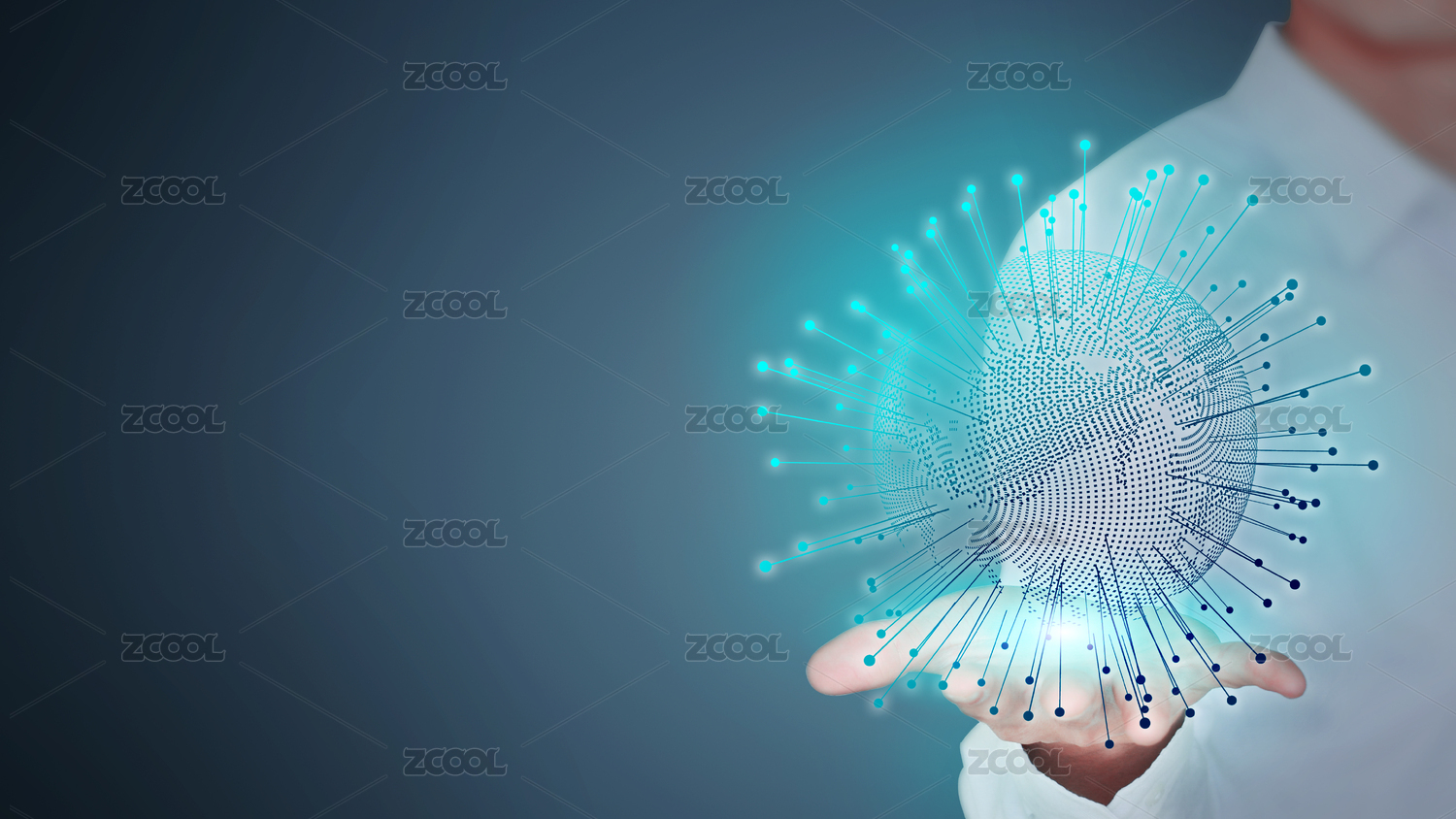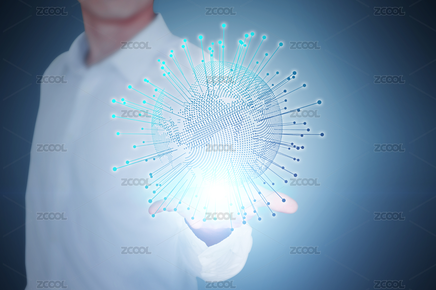 特寫一個(gè)商務(wù)男人手捧發(fā)光放射的數(shù)碼地球