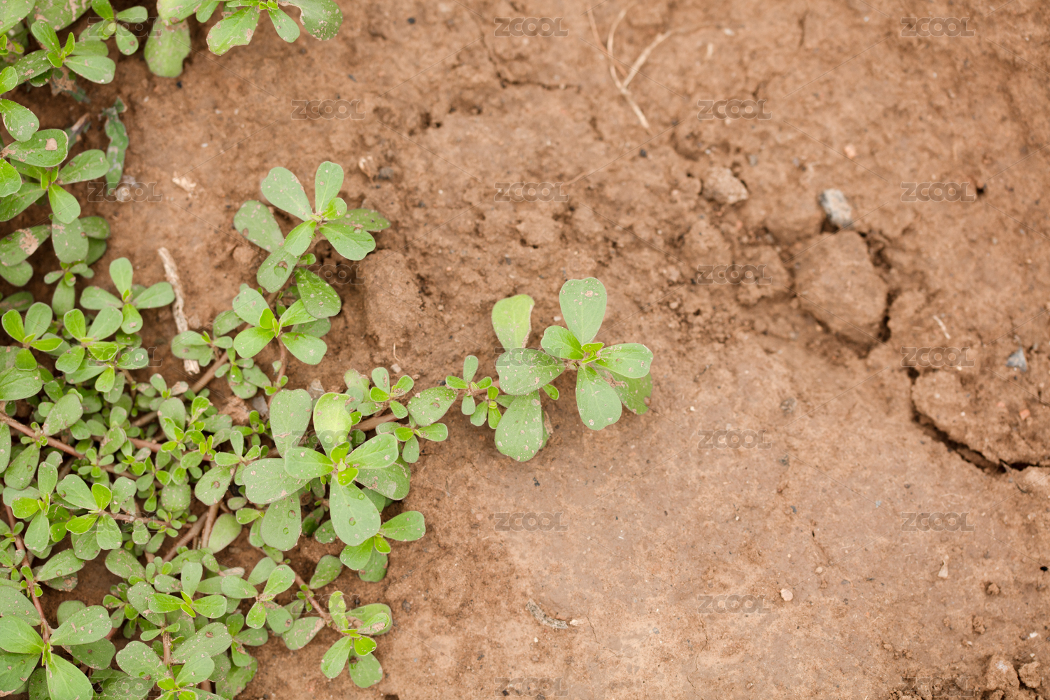 地上枯黃的馬齒莧的伸展紋理