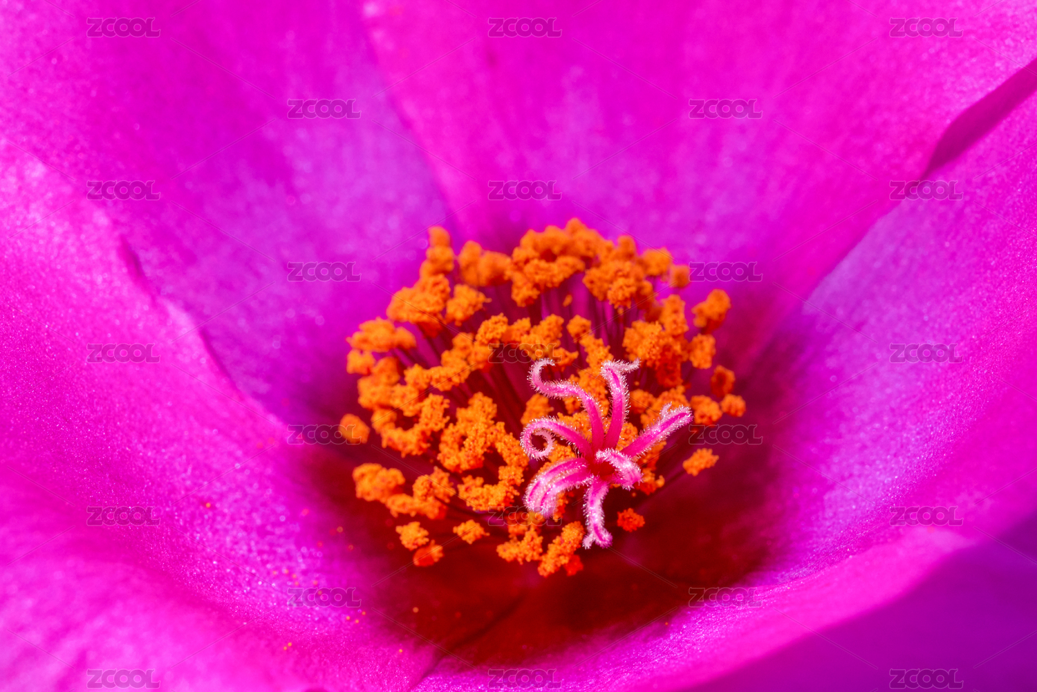 一朵單瓣馬齒莧花的花蕊特寫