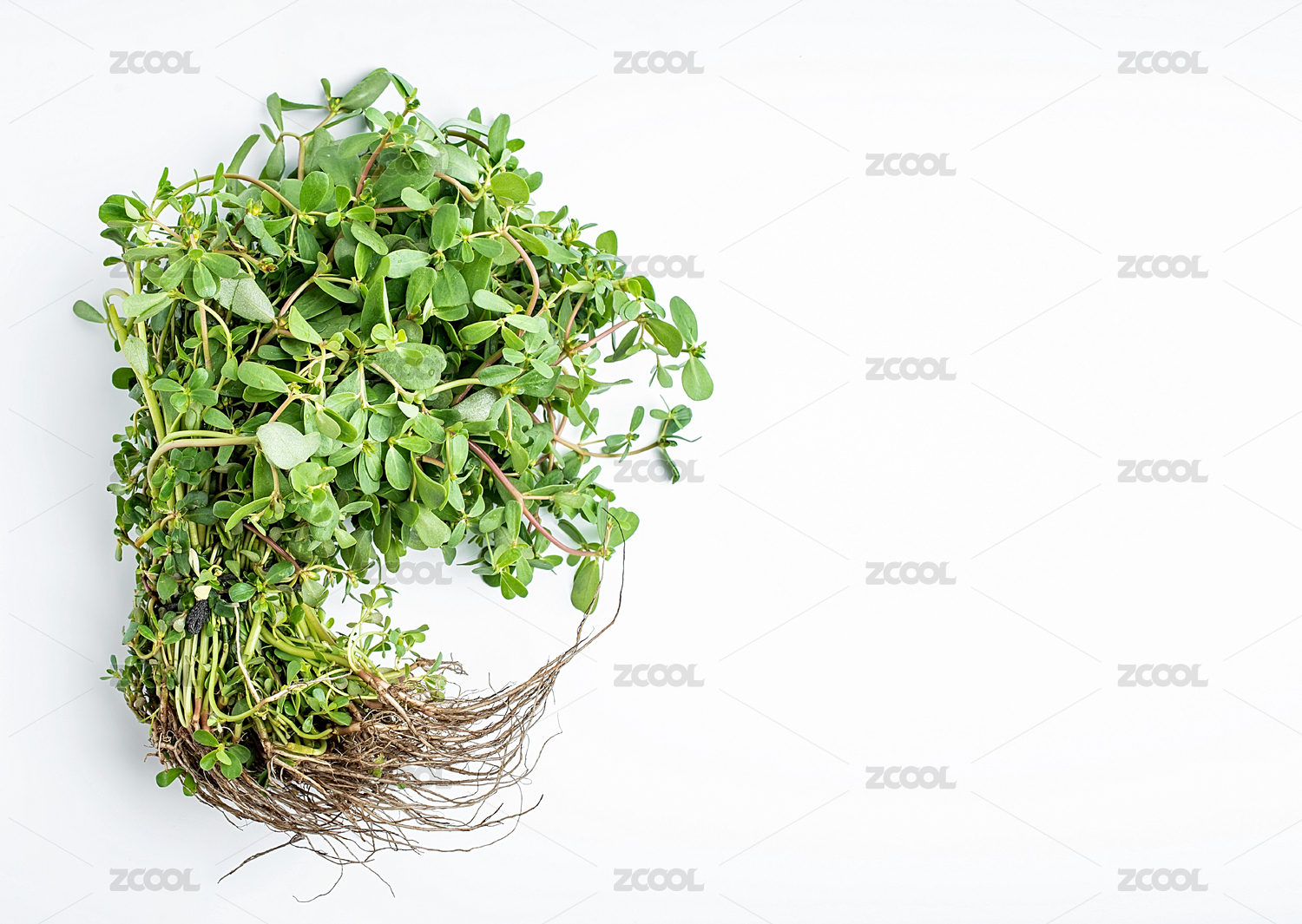 白背景上一把新鮮野菜馬齒莧
