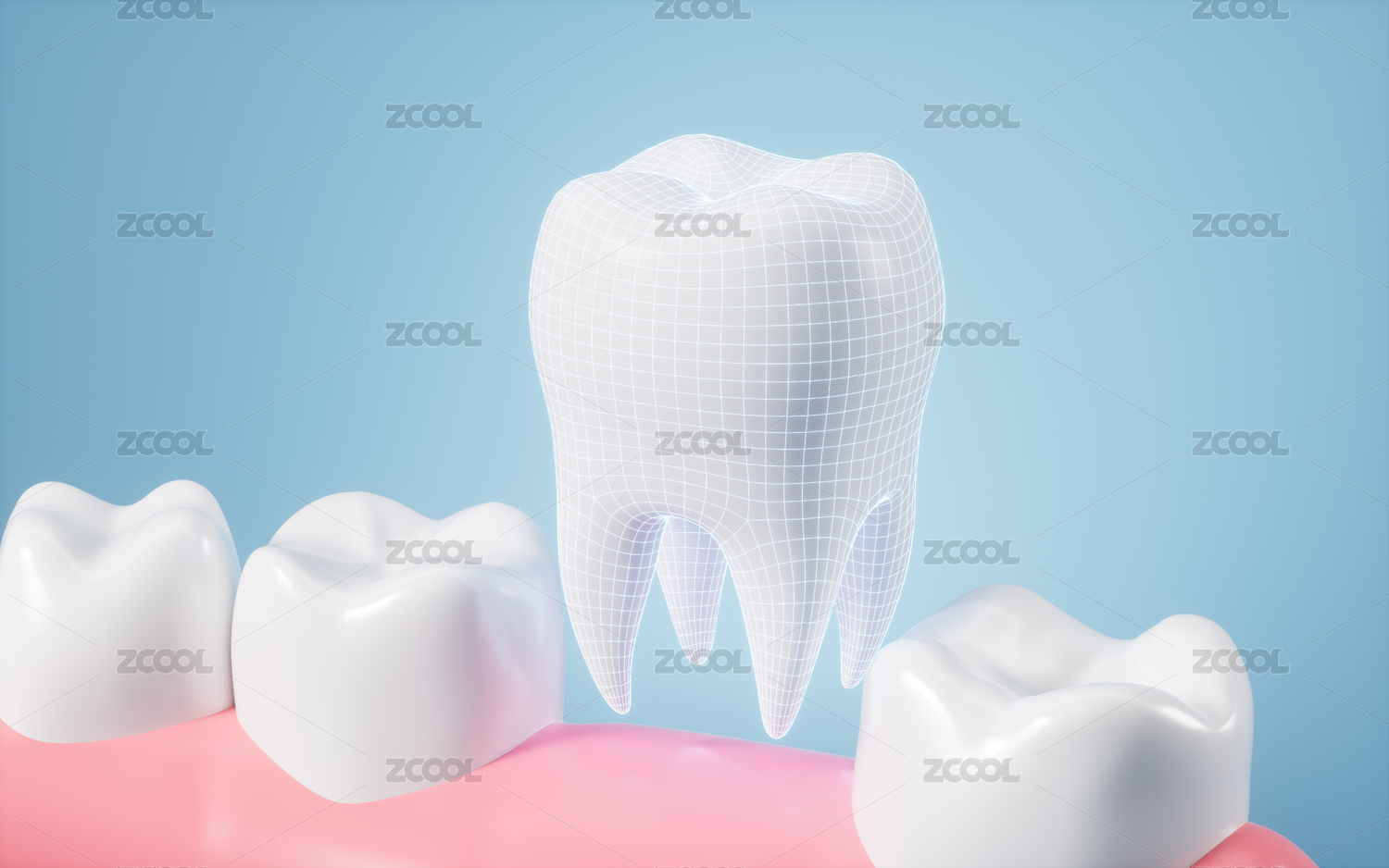 人類牙齒修復(fù)假牙植入牙齒3D渲染