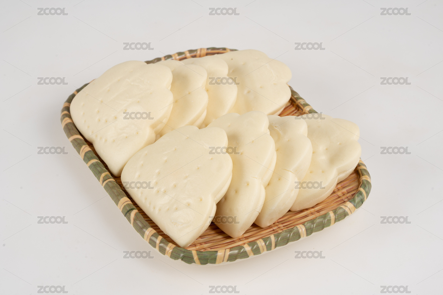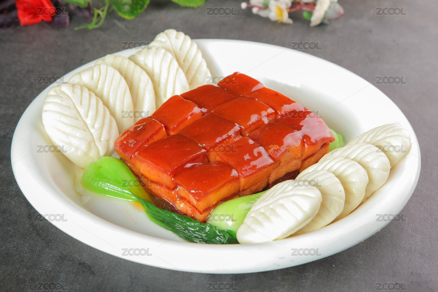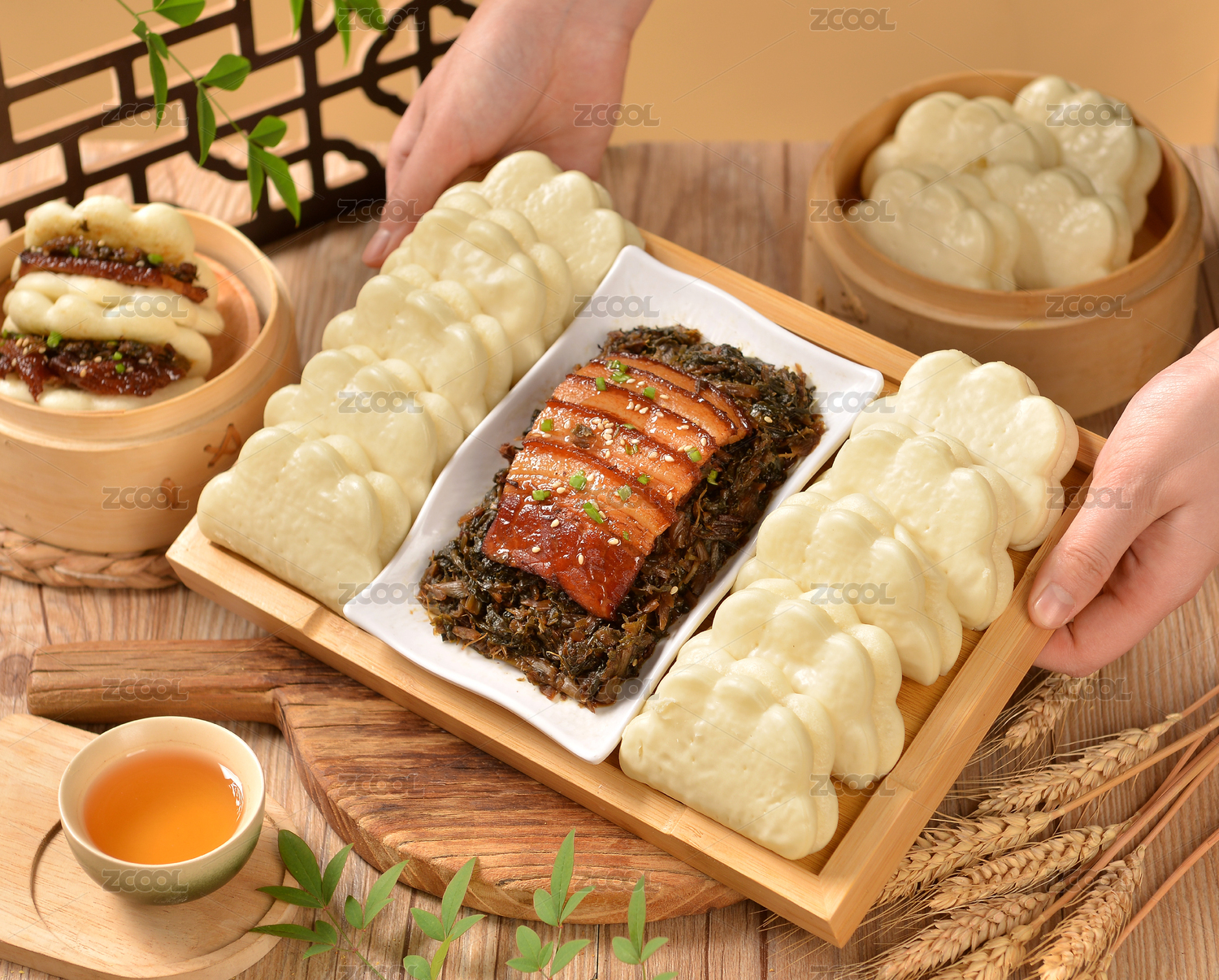 放在木紋背景上盤子里的牛肉片和荷葉餅