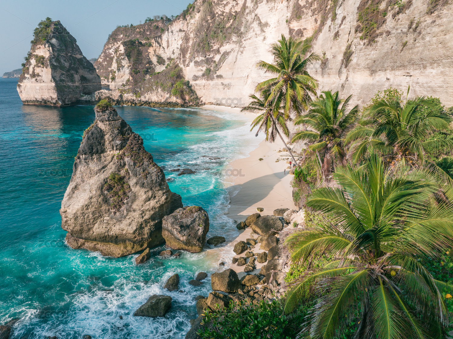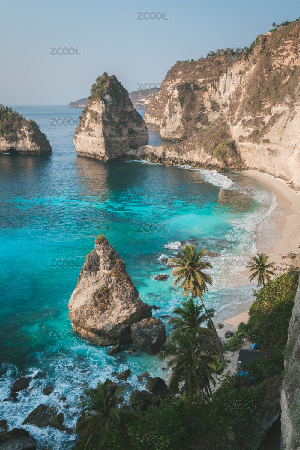 印尼佩尼達(dá)島懸崖鉆石海灘熱帶島嶼棕櫚樹自