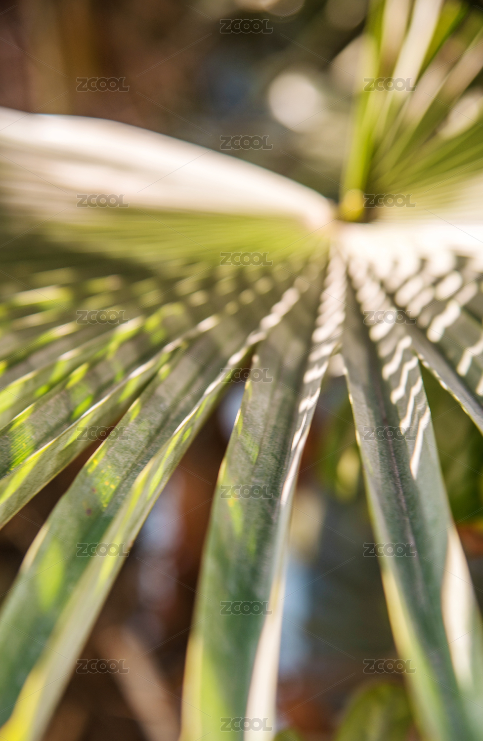 暖色光線環(huán)境中的棕櫚樹葉子特寫